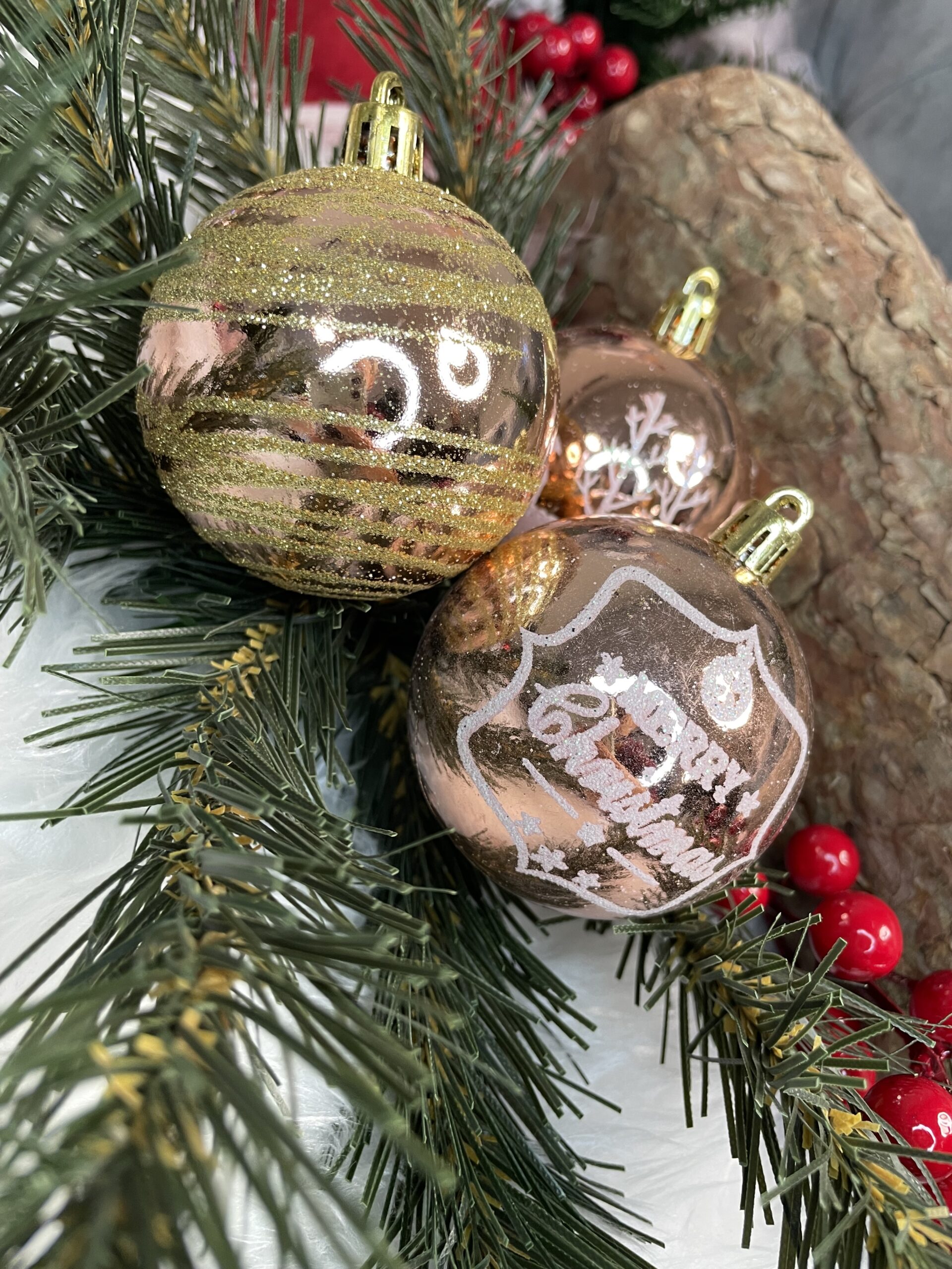 Adauga un plus de eleganta bradului cu acest set de globuri de Craciun rose, ideal pentru decoruri festive moderne si rafinate. Cele 24 de globuri au un finisaj stralucitor si modele de sarbatoare variate, fiind potrivite pentru brad, aranjamente de masa, decorarea usilor sau ambalarea creativa a cadourilor. Datorita materialului din plastic incasabil, sunt o alegere practica si sigura pentru familiile cu copii sau animale de companie.