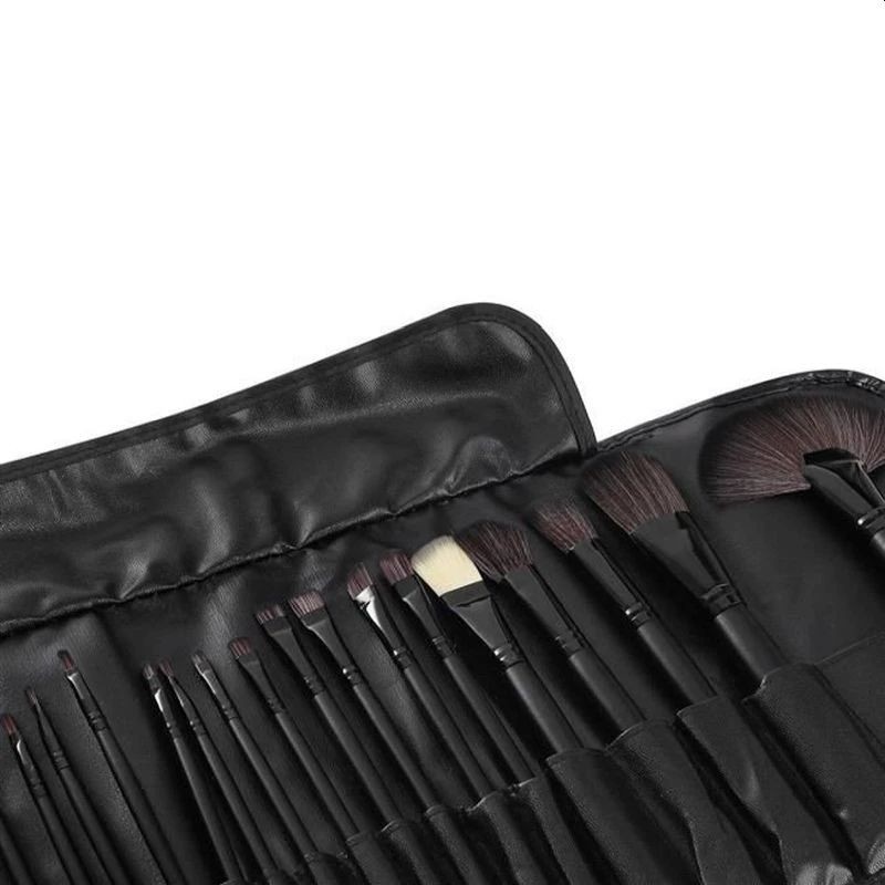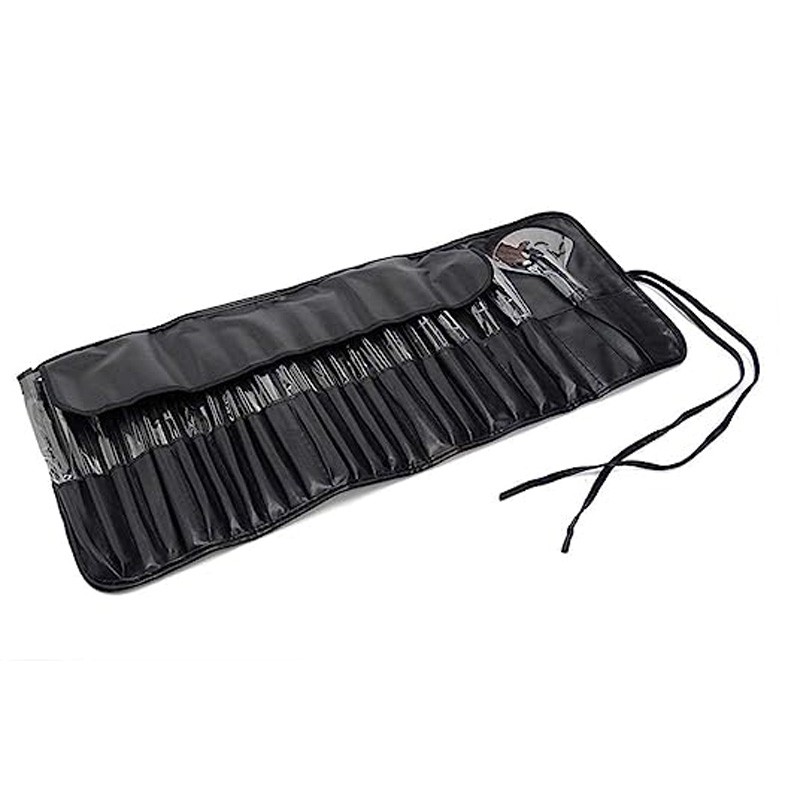 Set 24 pensule profesionale pentru machiaj, păr sintetic, husă pliabilă, negru