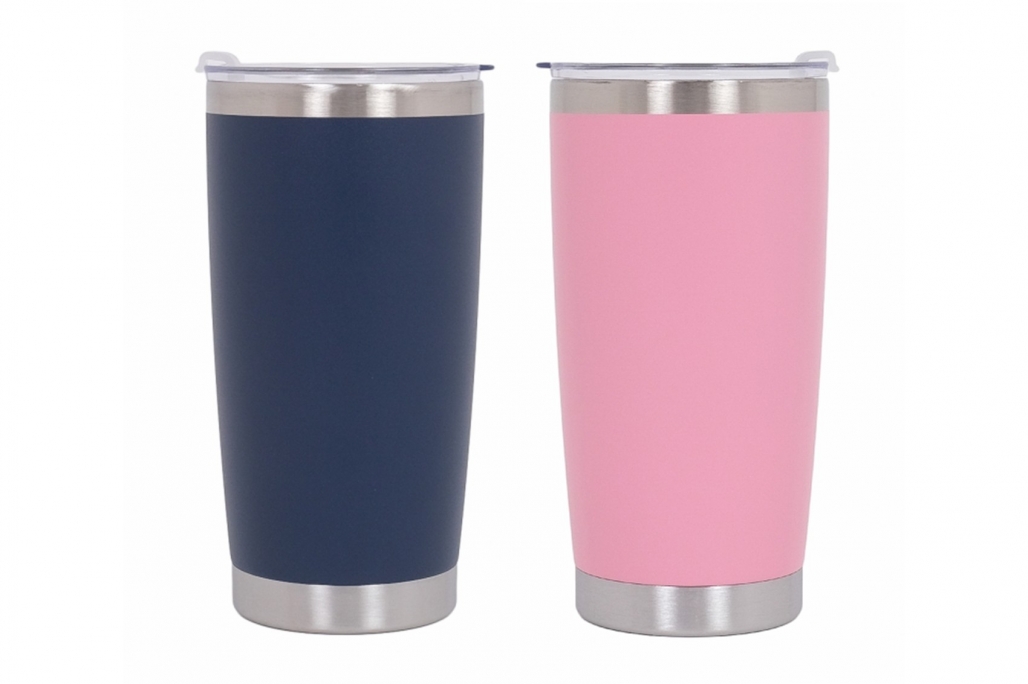 Set 2x Cana Termoizolanta Otel Inoxidabil SS304 cu Capac Perete Dublu 590ml Roz Albastru