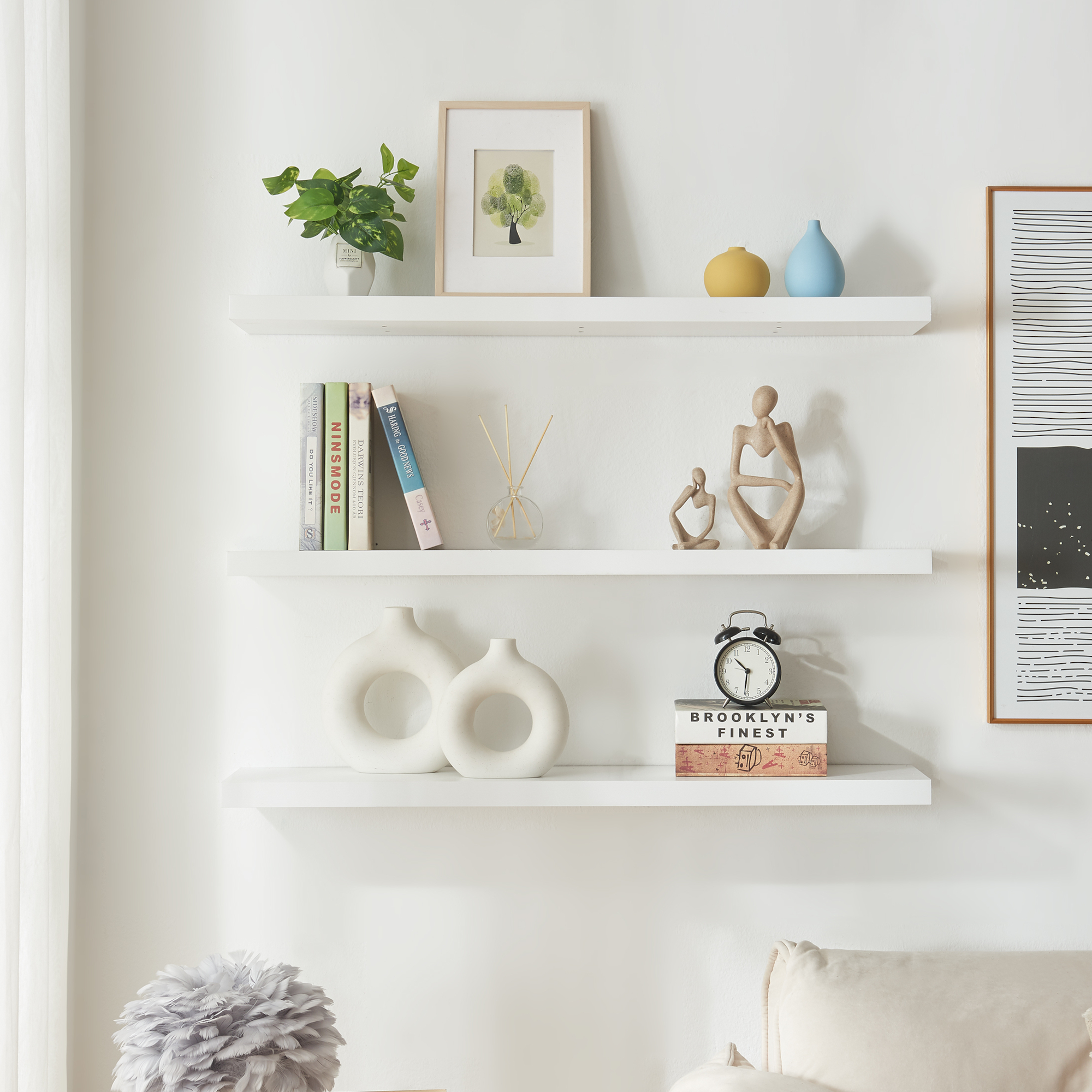 Set 3 buc raft perete Stranda 100x20x3,5 cm alb [en.casa] HausGarden Leisure
