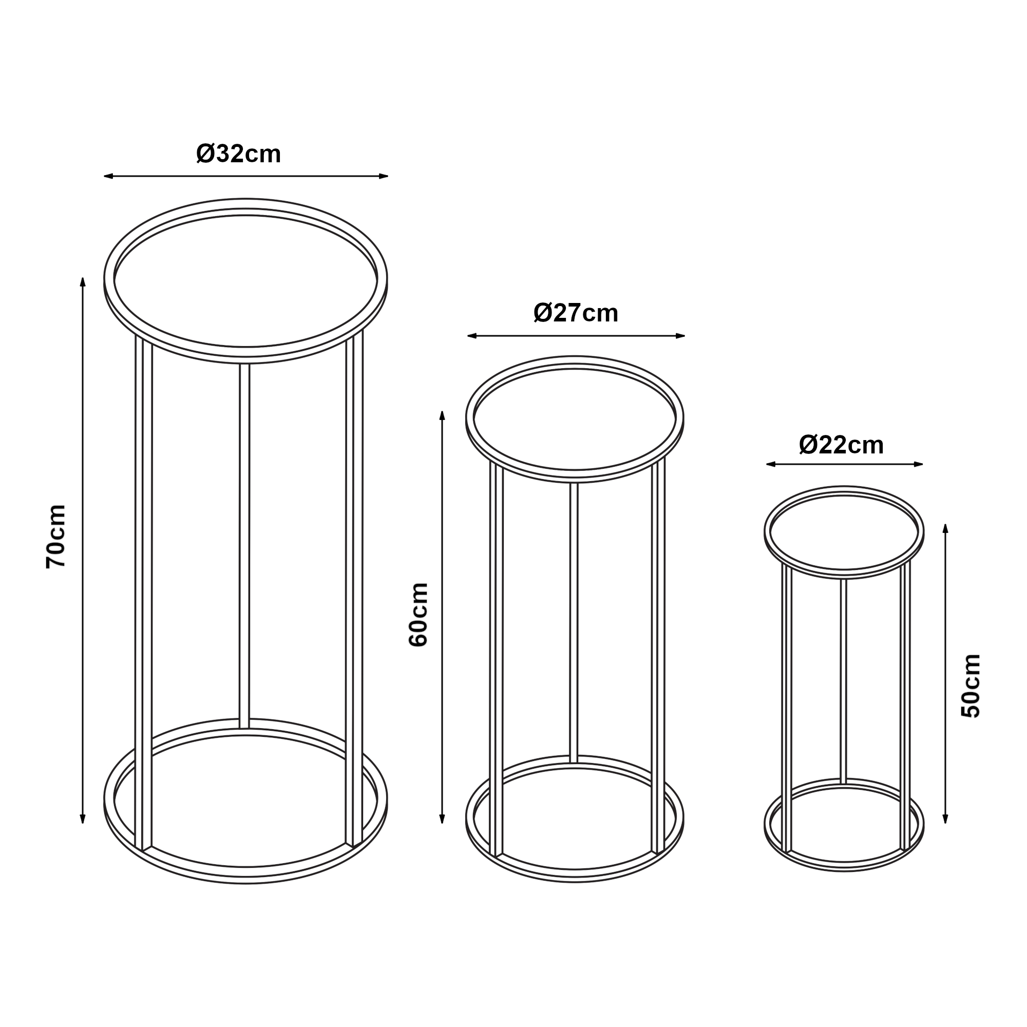 Setul este format din trei suporturi marimi diferite pentru flori. Poate fi accesoriul perfect din locuinta dvs, pentru a va pune in evidenta plantele preferate.