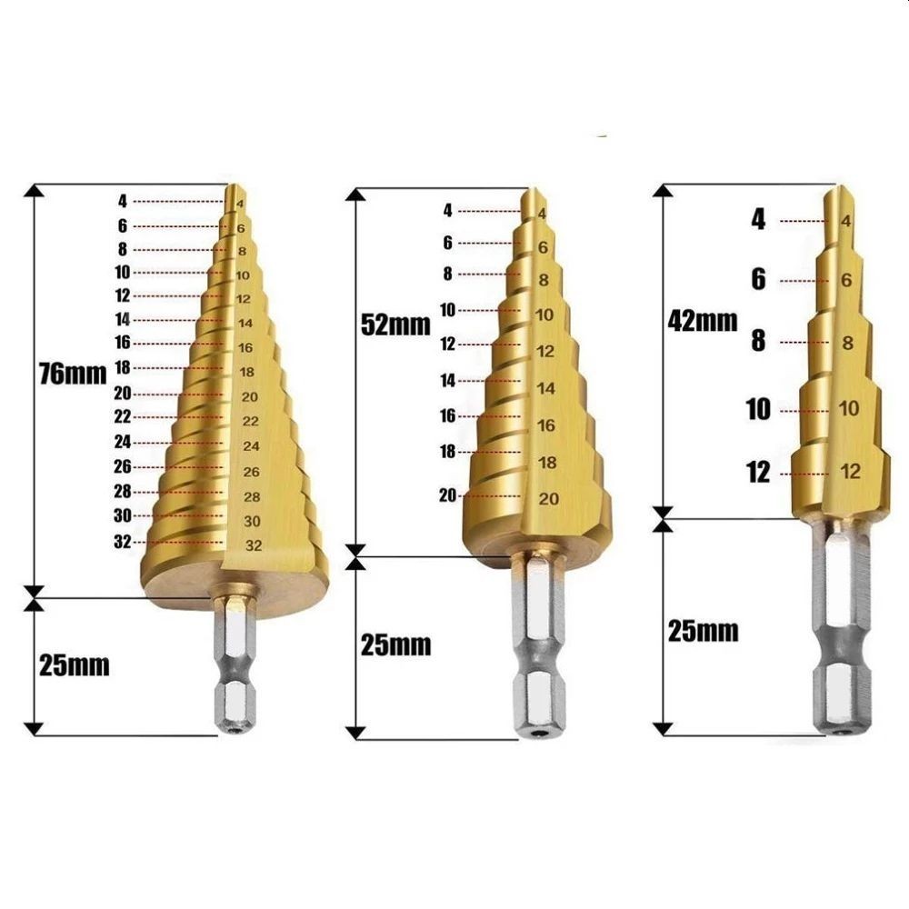 Acest set este format din 3 burghie conice fabricate din otel rezistent si durabil, potrivite pentru a gauri metal, PVC sau foi de otel cu pereti subtiri. Setul contine 3 burghie de dimensiuni diferite, fiecare avand o numerotare marcata care permite realizarea rapida si precisa a gaurilor la diametrul dorit. Setul dispune de o husa pentru a evita deteriorarea burghielor.