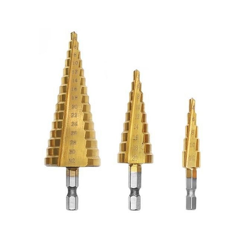 Specificatii Set 3 burghie conice in trepte,