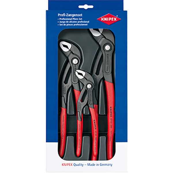 Piese incluse in pachetul de livrare: 1 x 87 01 180 KNIPEX Cobra® Cleste high tech pentru pompe de apa, 1 x 87 01 250 KNIPEX Cobra® Cleste high tech pentru pompe de apa, 1 x 87 01 300 KNIPEX Cobra® Cleste high tech pentru pompe de apa,