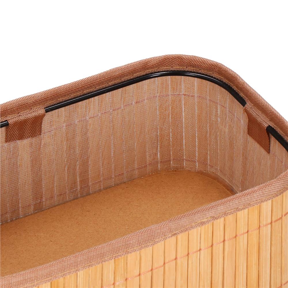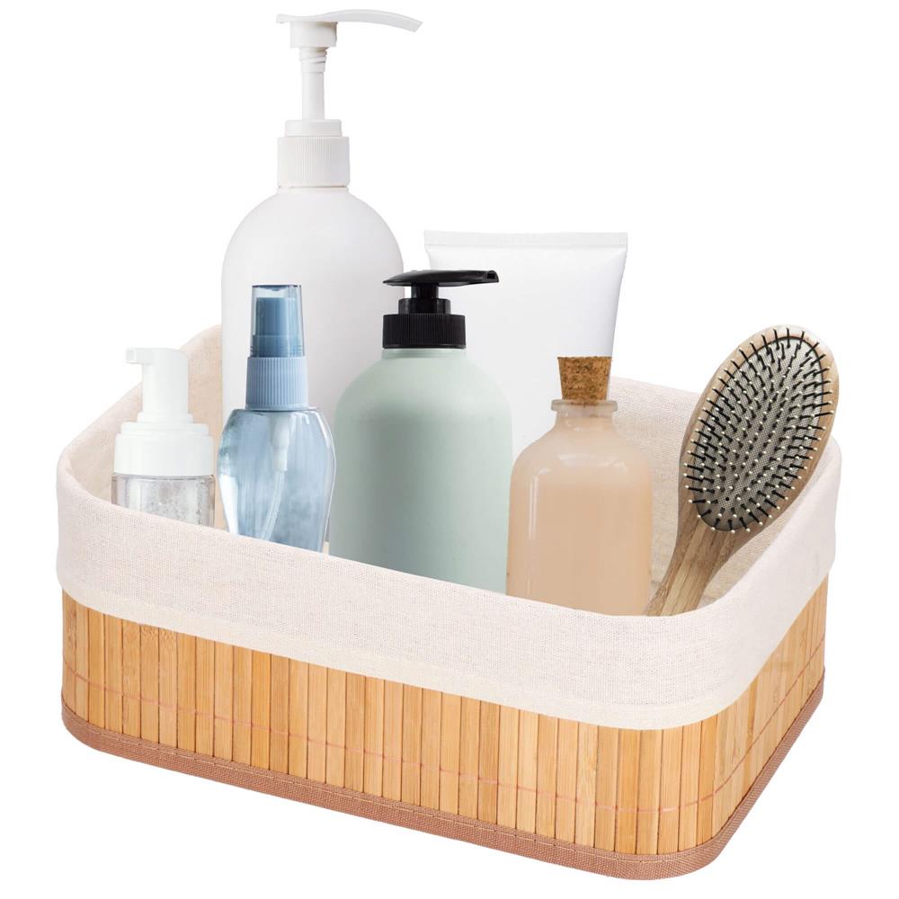 Fiecare cutie organizatoare din bambus este usoara, practica si deschisa, pentru acces rapid la continut. Captuseala textila ofera un aspect placut si contribuie la protejarea obiectelor depozitate. Este o alegere inspirata daca vrei sa optimizezi spatiul de pe raft, comoda, birou sau blat de baie.