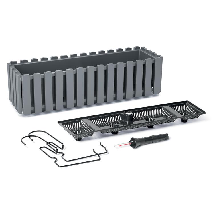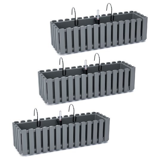 Set 3 jardiniere decorative cu suport metalic, sistem irigare, gri, 58x18x16.2 cm, Boardee Fencycase W GartenVIP DiyLine