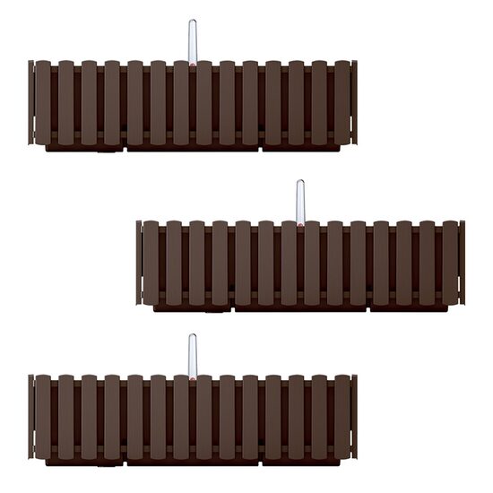 Set 3 jardiniere decorative cu suport metalic, sistem irigare, maro, 58x18x16.2 cm, Boardee Fencycase W GartenVIP DiyLine