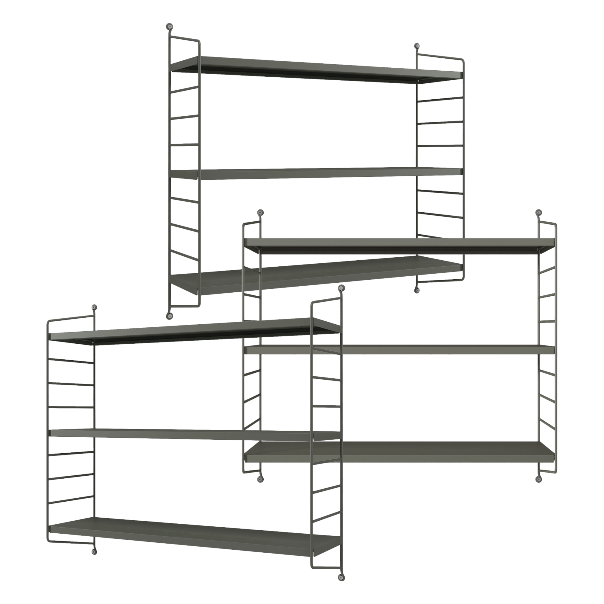 Set 3 rafturi de perete modulare din oțel, antracit, Strängnäs