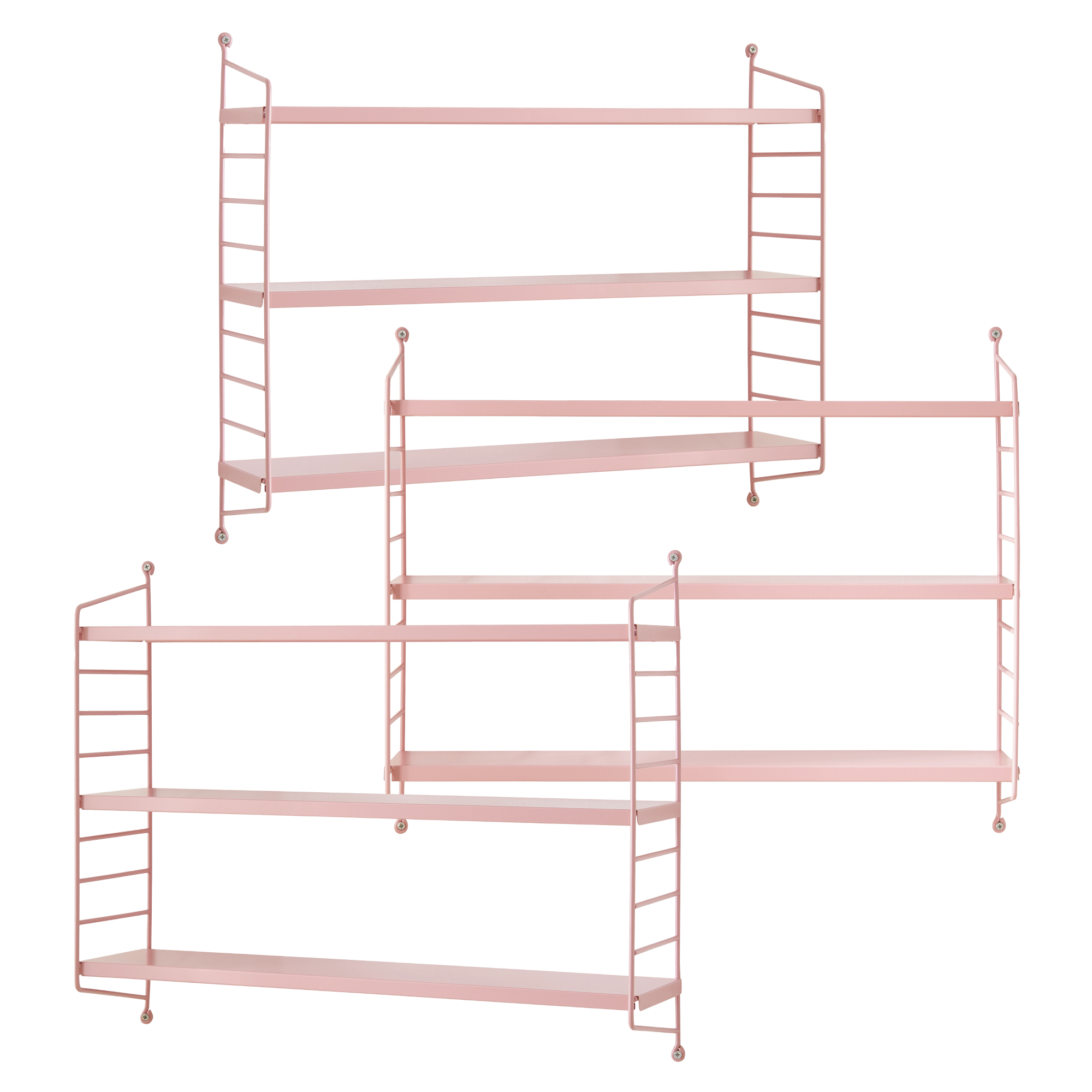 Set 3 rafturi de perete modulare roz din otel, cu 3 polite, Strängnäs