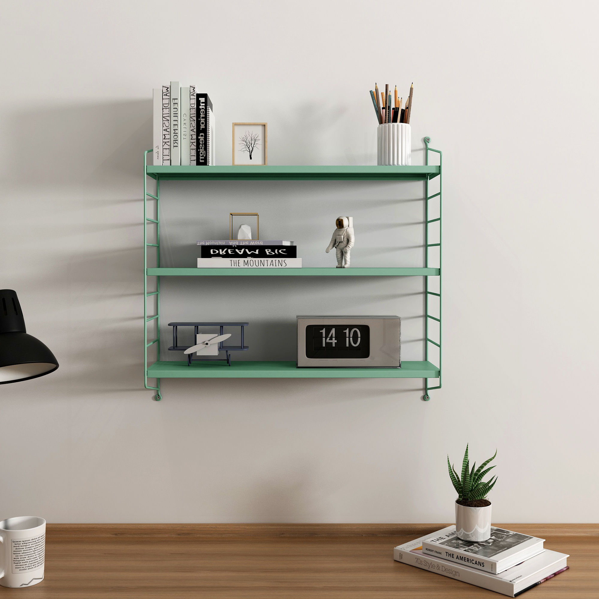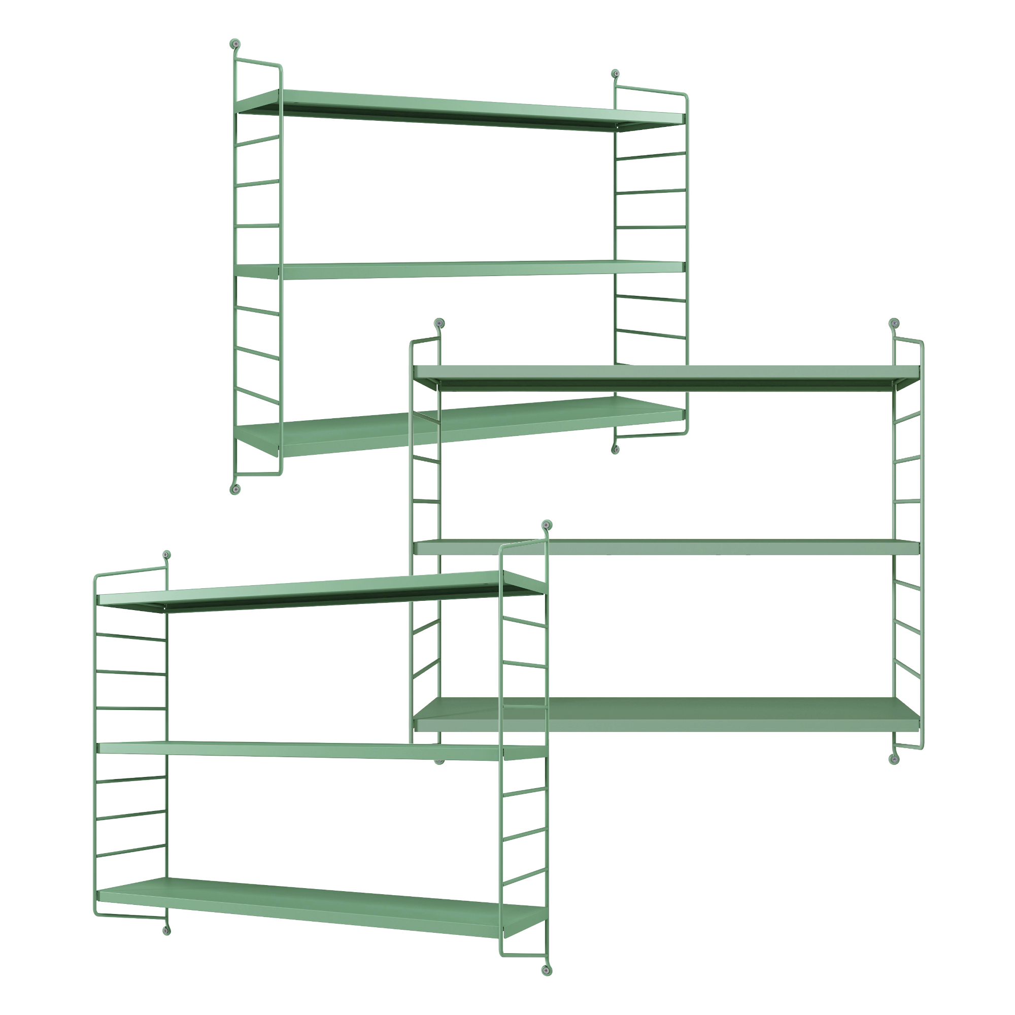 Set 3 rafturi de perete modulare Strangnas, verde pastel, din otel