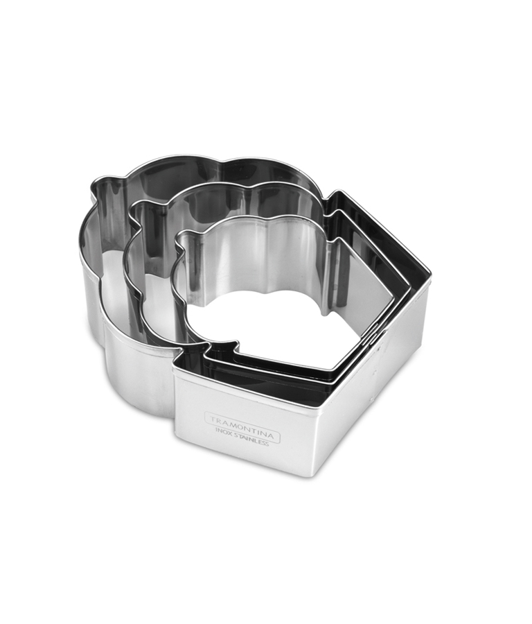 Set 3 sabloane model briosa, gama LA PASTICCERIA; fabricate din inox de foarte buna calitate; dimensiune totala 115x85x35mm; se poate curata in masina de spalat vase.