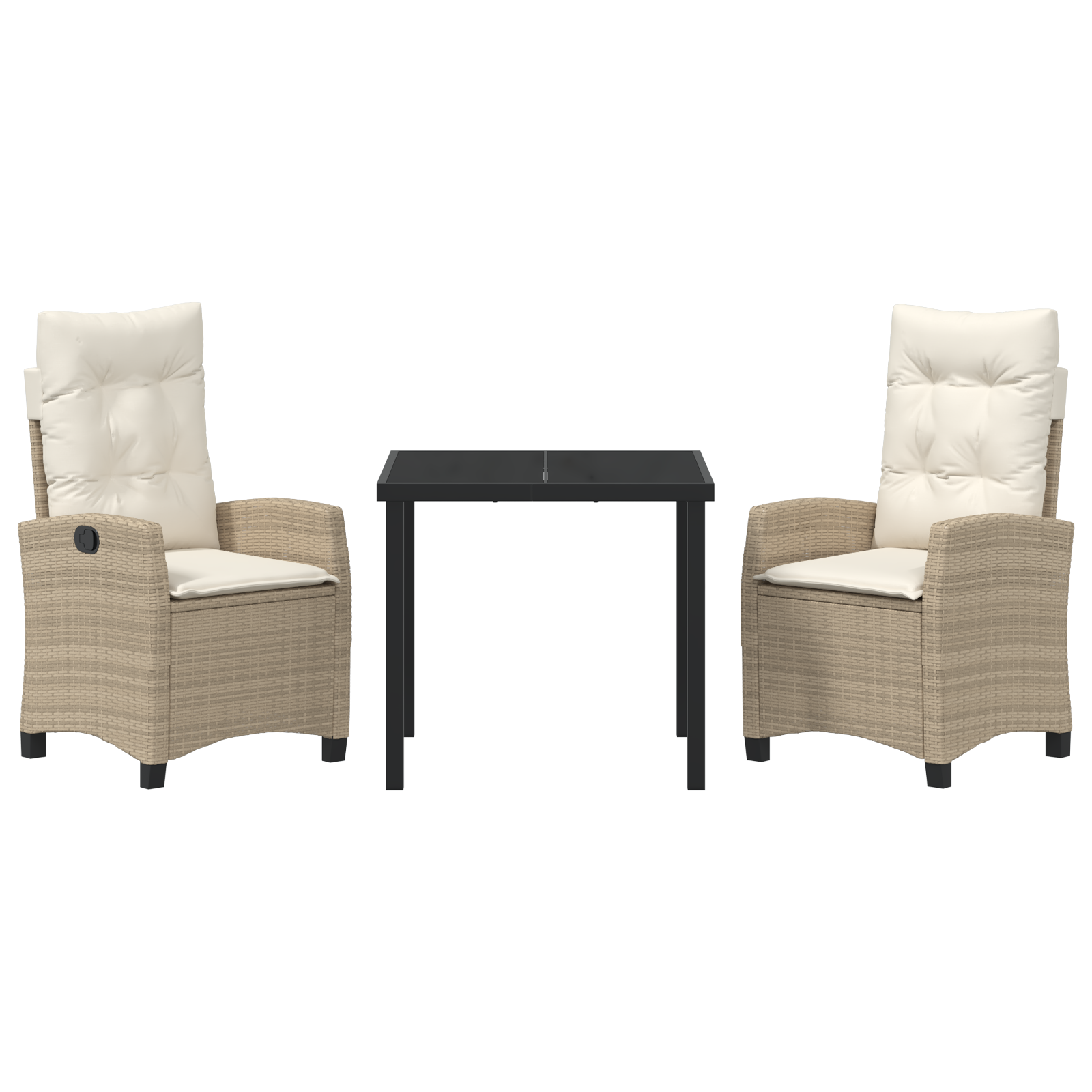 Set 3 Scaune Mâncat Grădină cu Pernițe Bej Poli Ratan GartenMobel Dekor