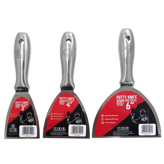 Acest set cuprinde 3 spacluri din otel inoxidabil de inalta calitate, cu dimensiuni variate (3", 4", 6" respectiv 75 mm, 100 mm si 150 mm), oferind flexibilitate pentru o gama larga de aplicatii.