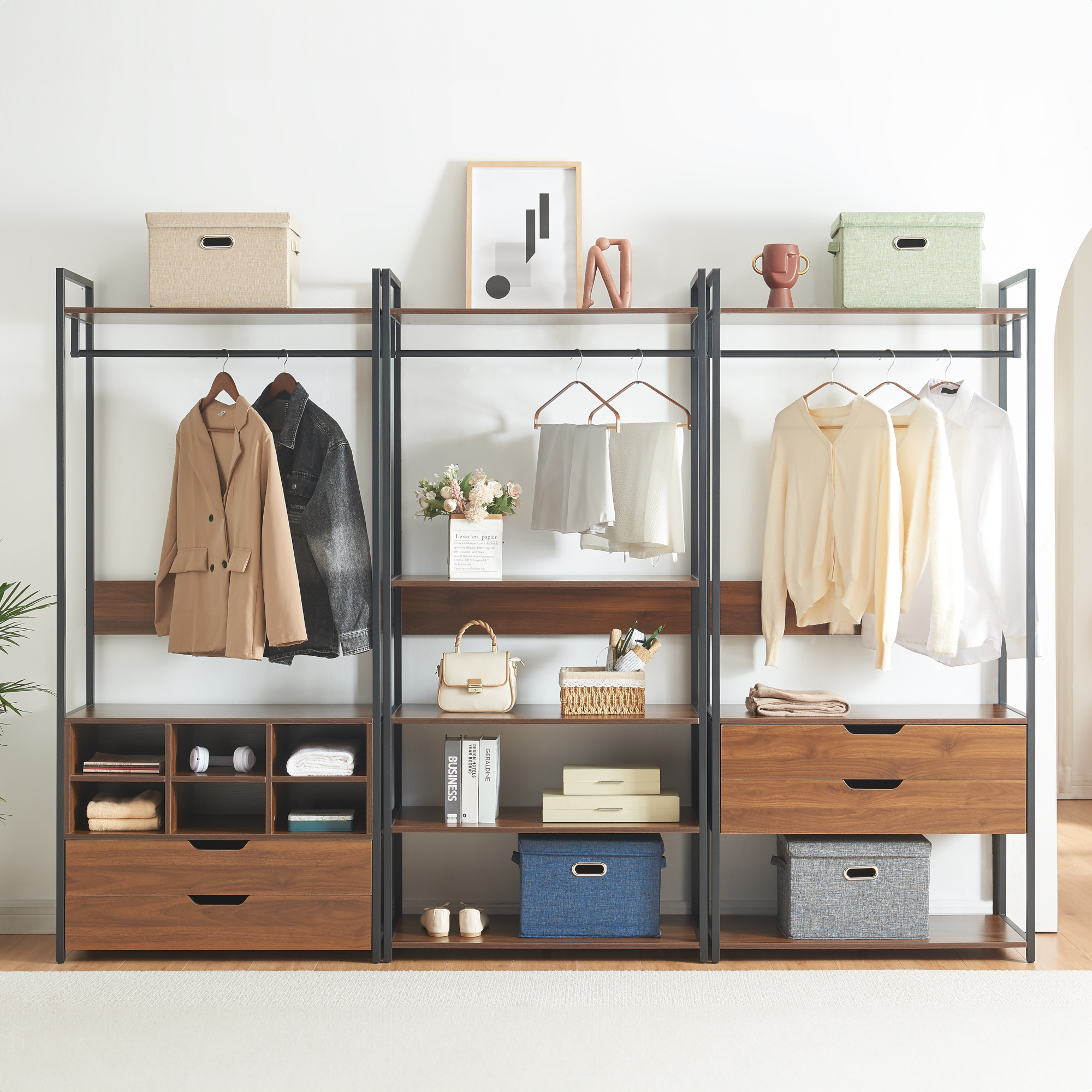 Set 3 suporturi pentru haine Larem cu 4 sertare, 7 rafturi si 6 compartimente