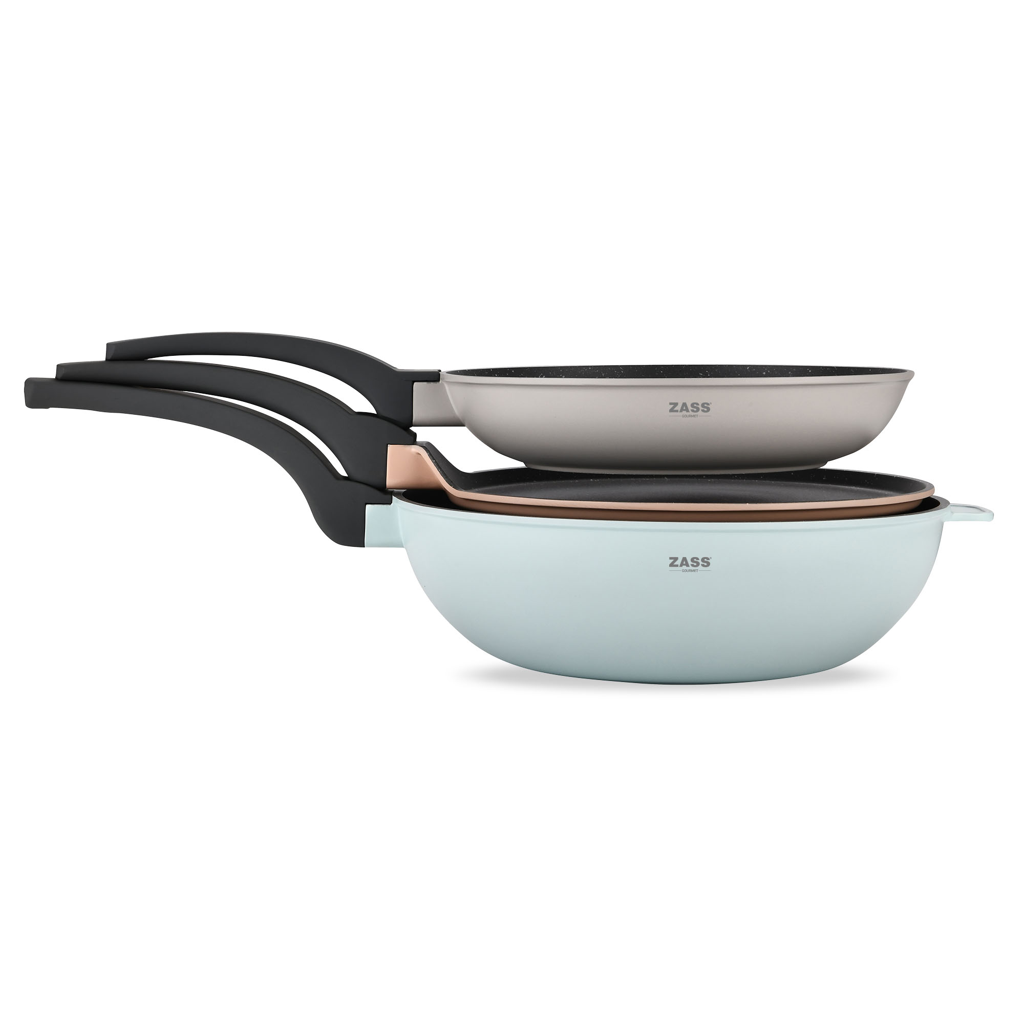 Set 3 tigăi antiaderente ZASS Gourmet din aluminiu turnat, Pastel