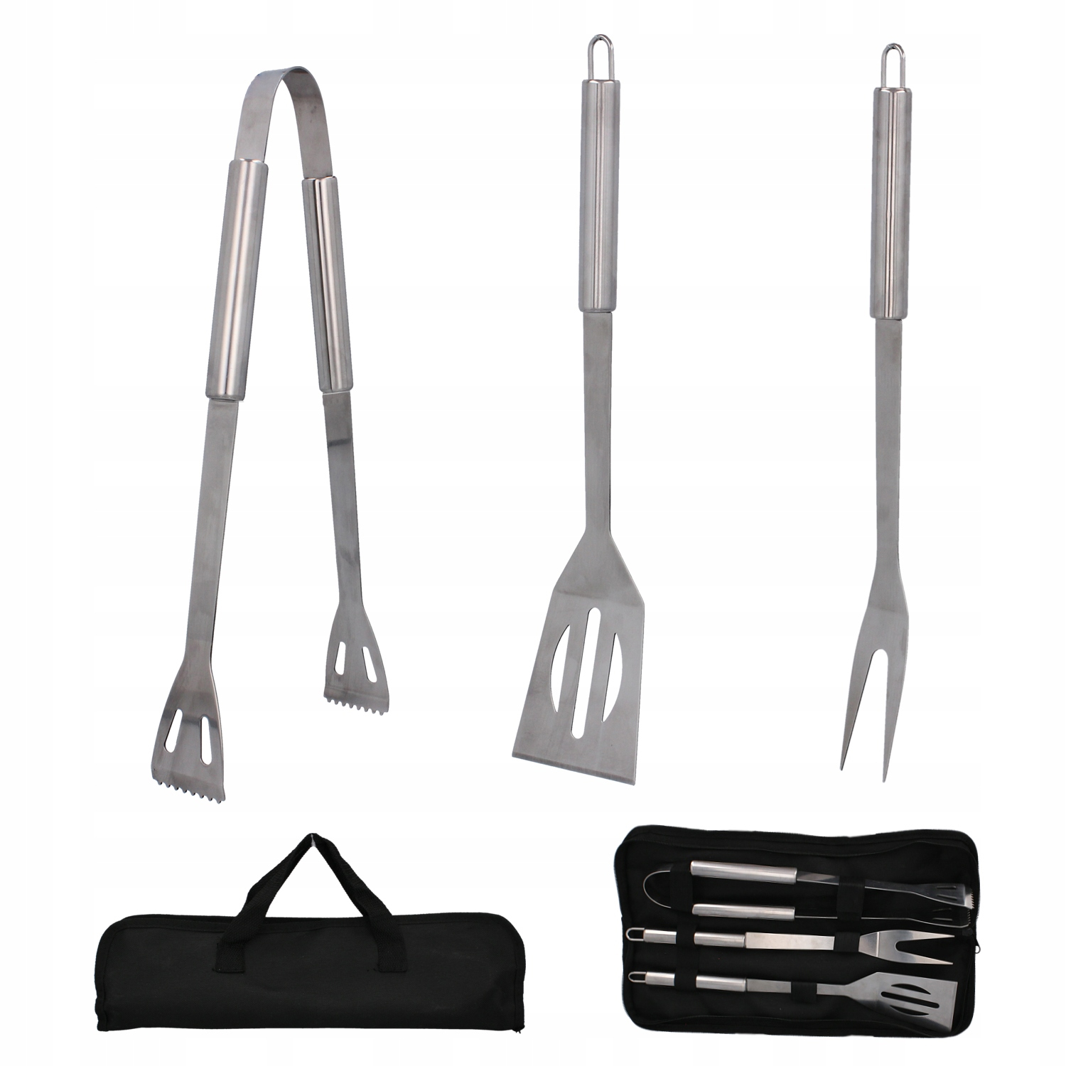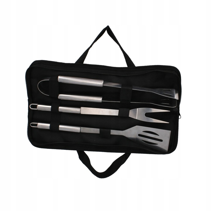 Set 3 ustensile pentru gratar din otel inoxidabil, spatula, furculita si cleste, cu husa Household NewTrend