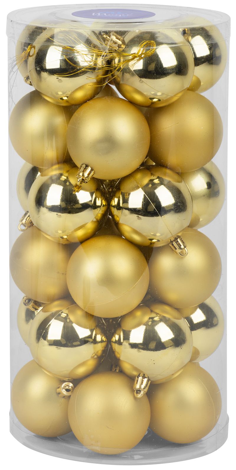 Set 30 globuri aurii pentru brad MagicHome, mix finisaje, 6 cm