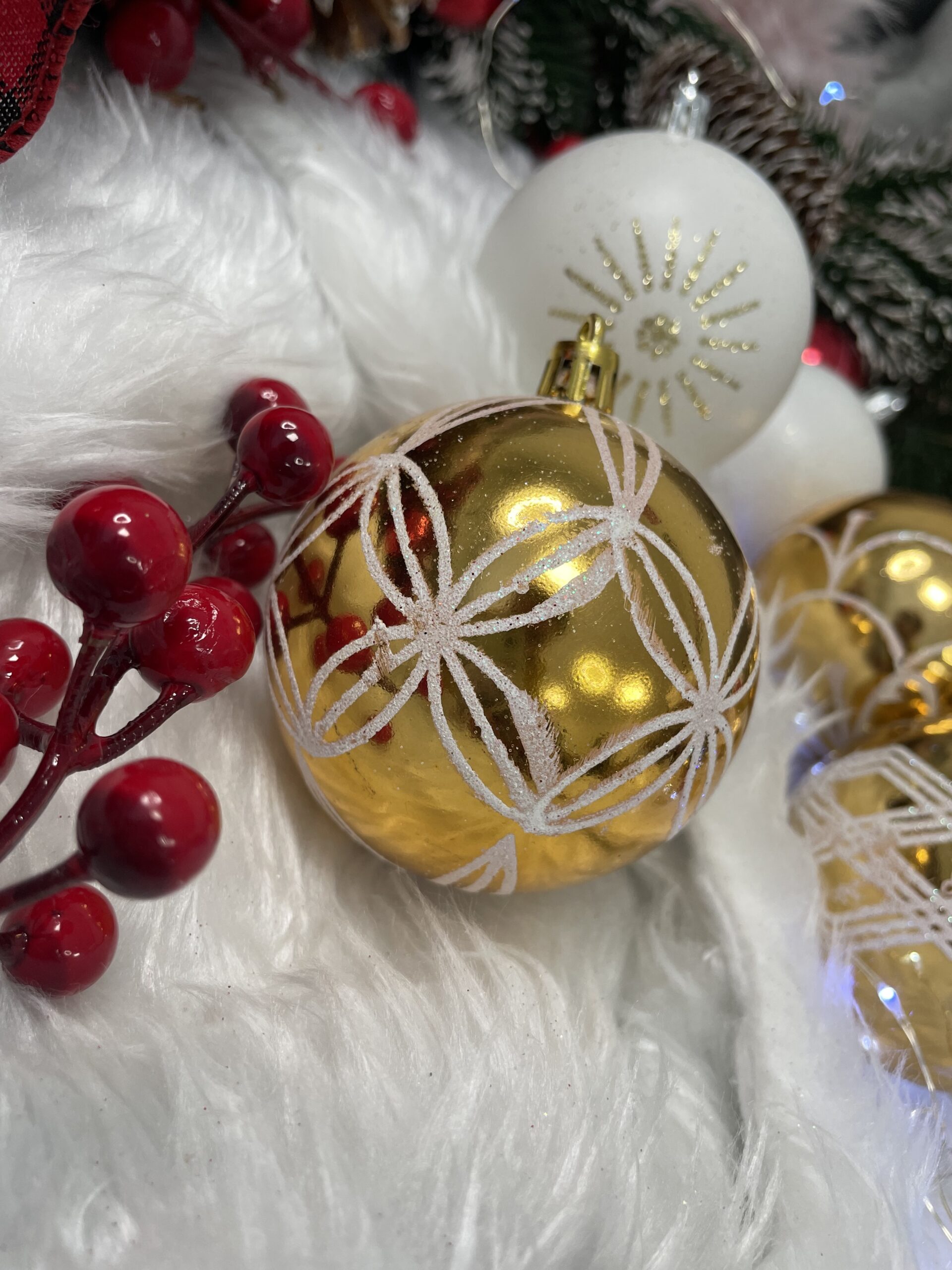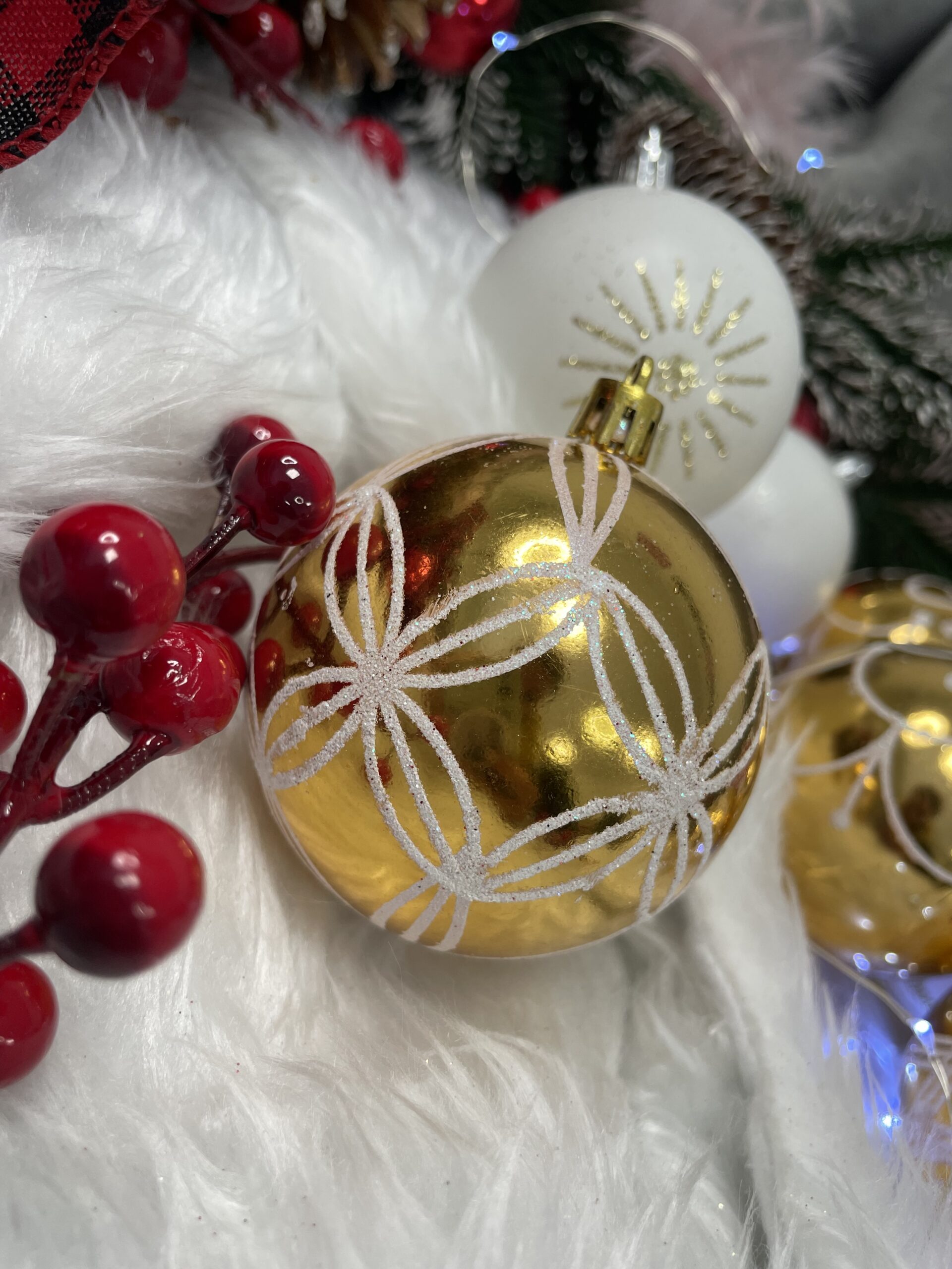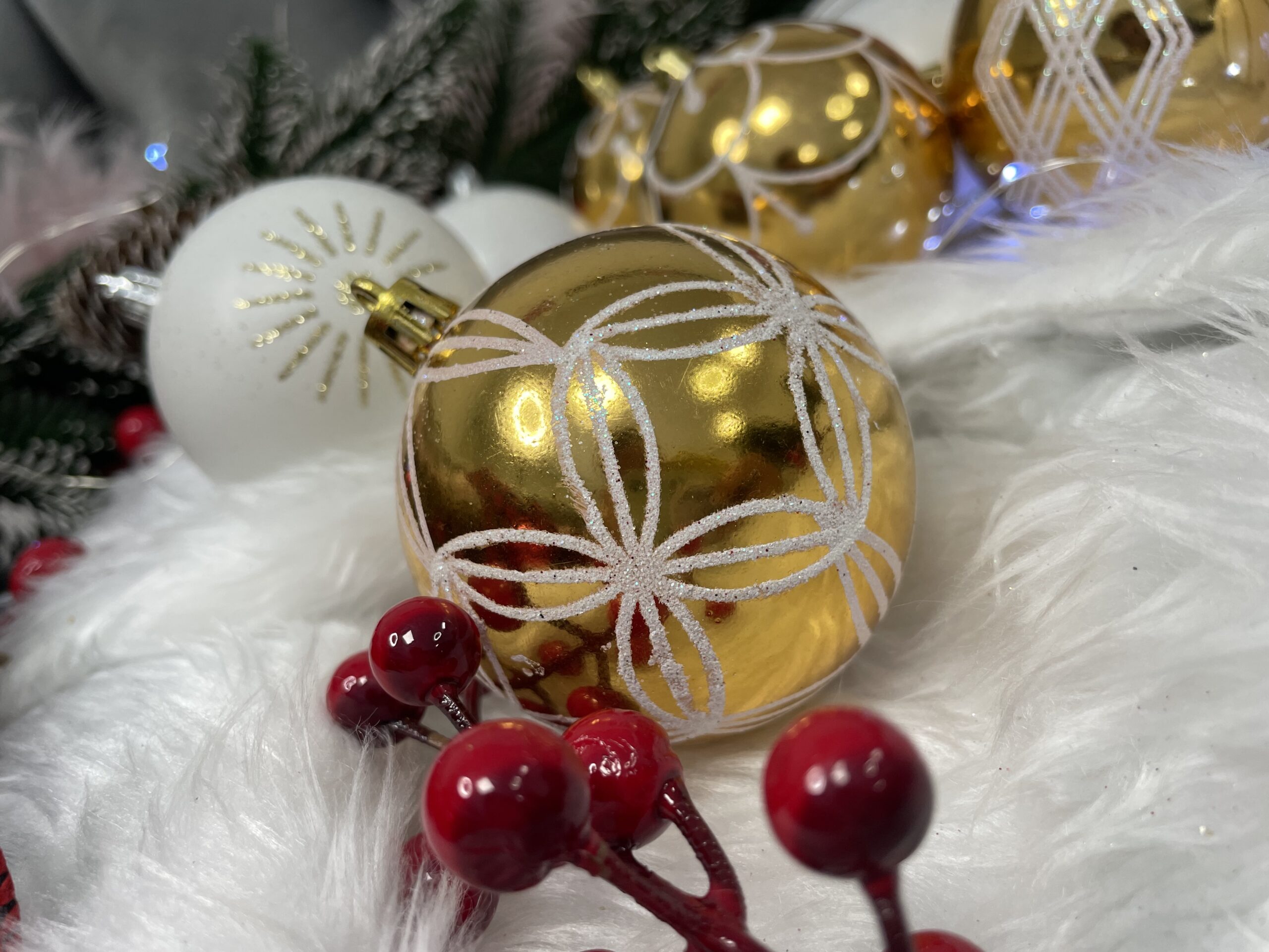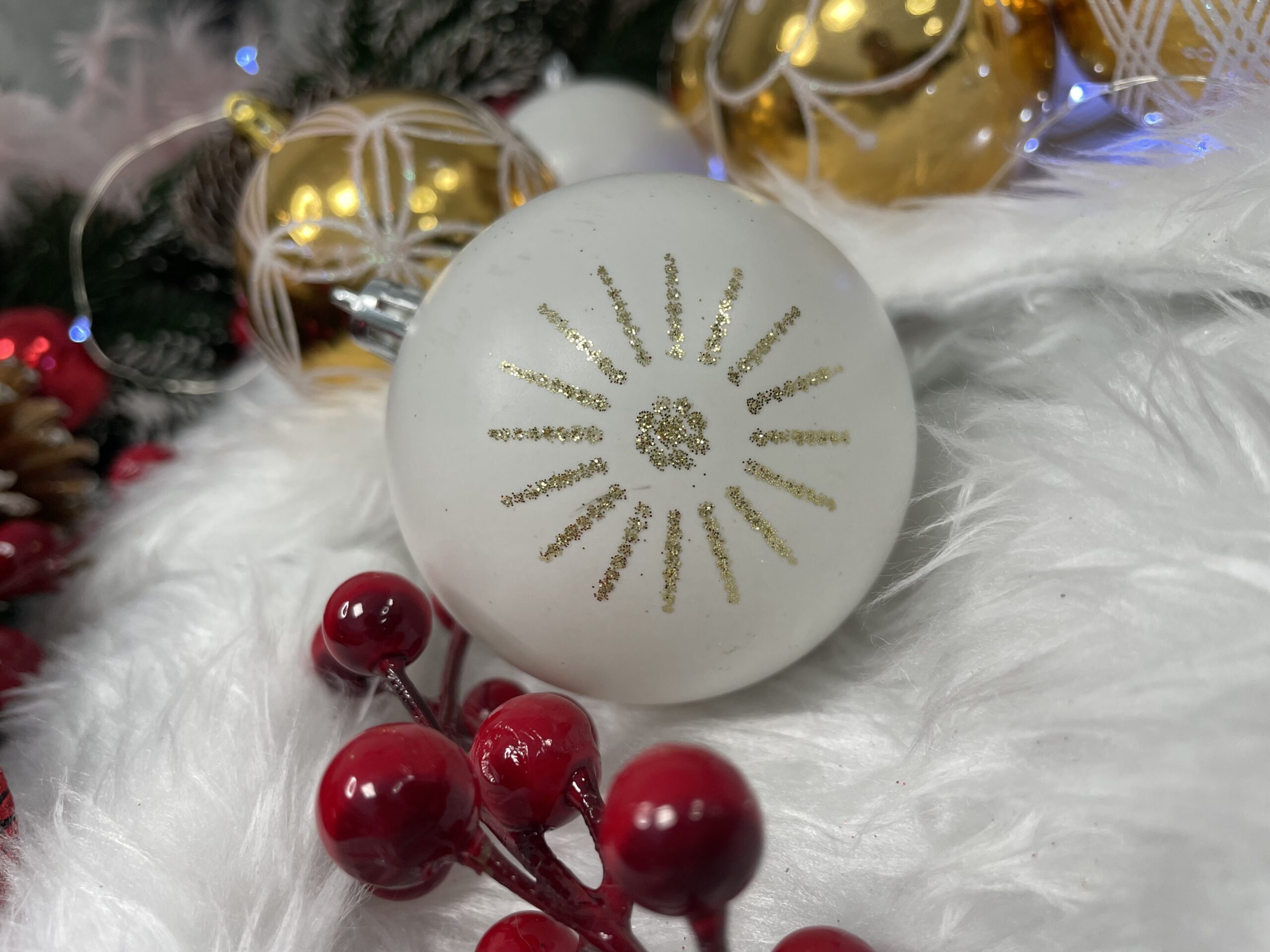 Adauga un plus de eleganta bradului cu acest set de globuri de Craciun in nuante alb auriu, potrivit pentru decoruri clasice, festive sau moderne. Globurile au diametrul de 7 cm si sunt realizate din plastic rezistent, fiind o alegere practica pentru case cu copii sau animale de companie. Finisajele variate creeaza un efect vizual bogat, atat ziua, cat si in lumina instalatiilor de sarbatoare.
