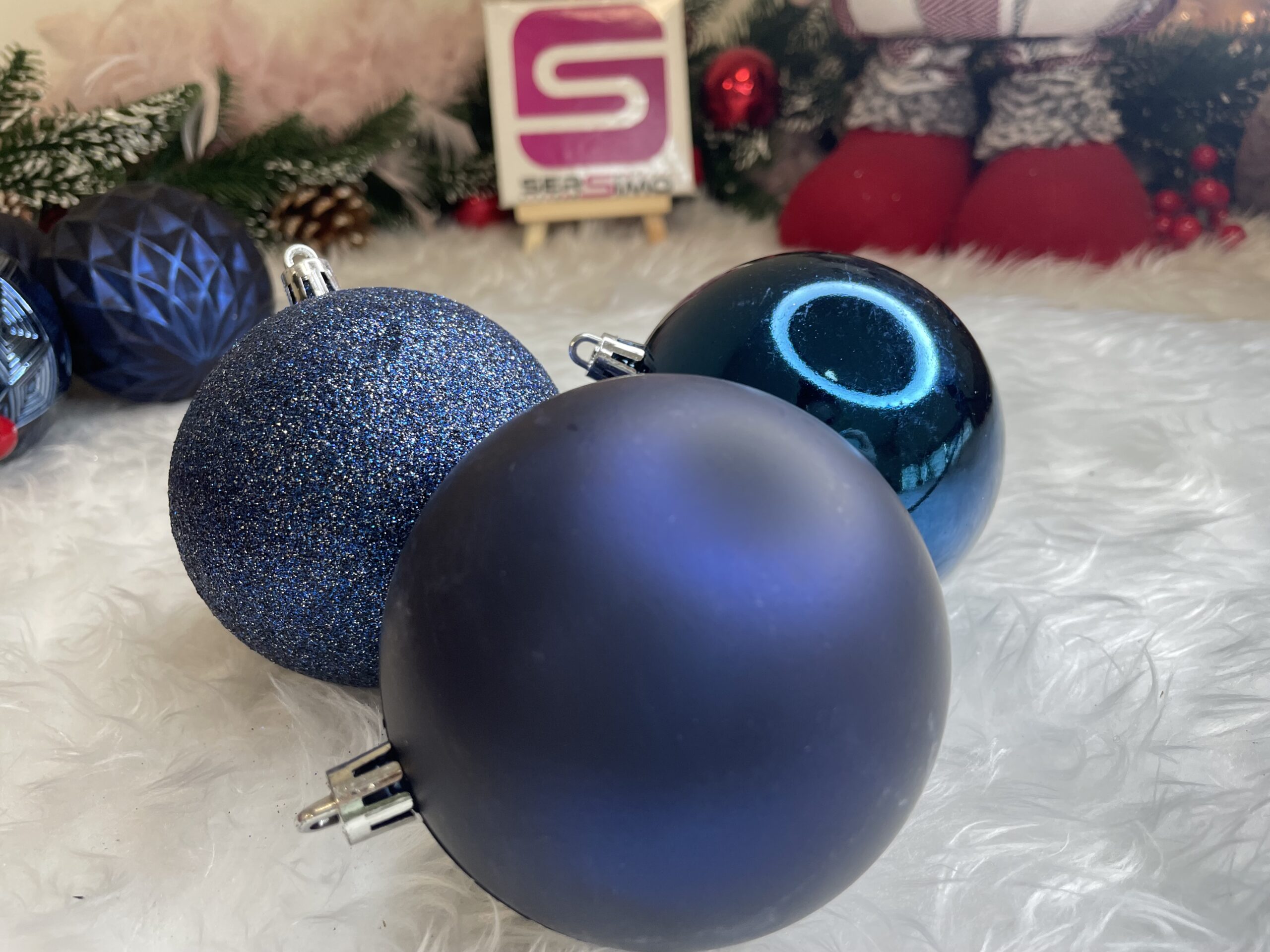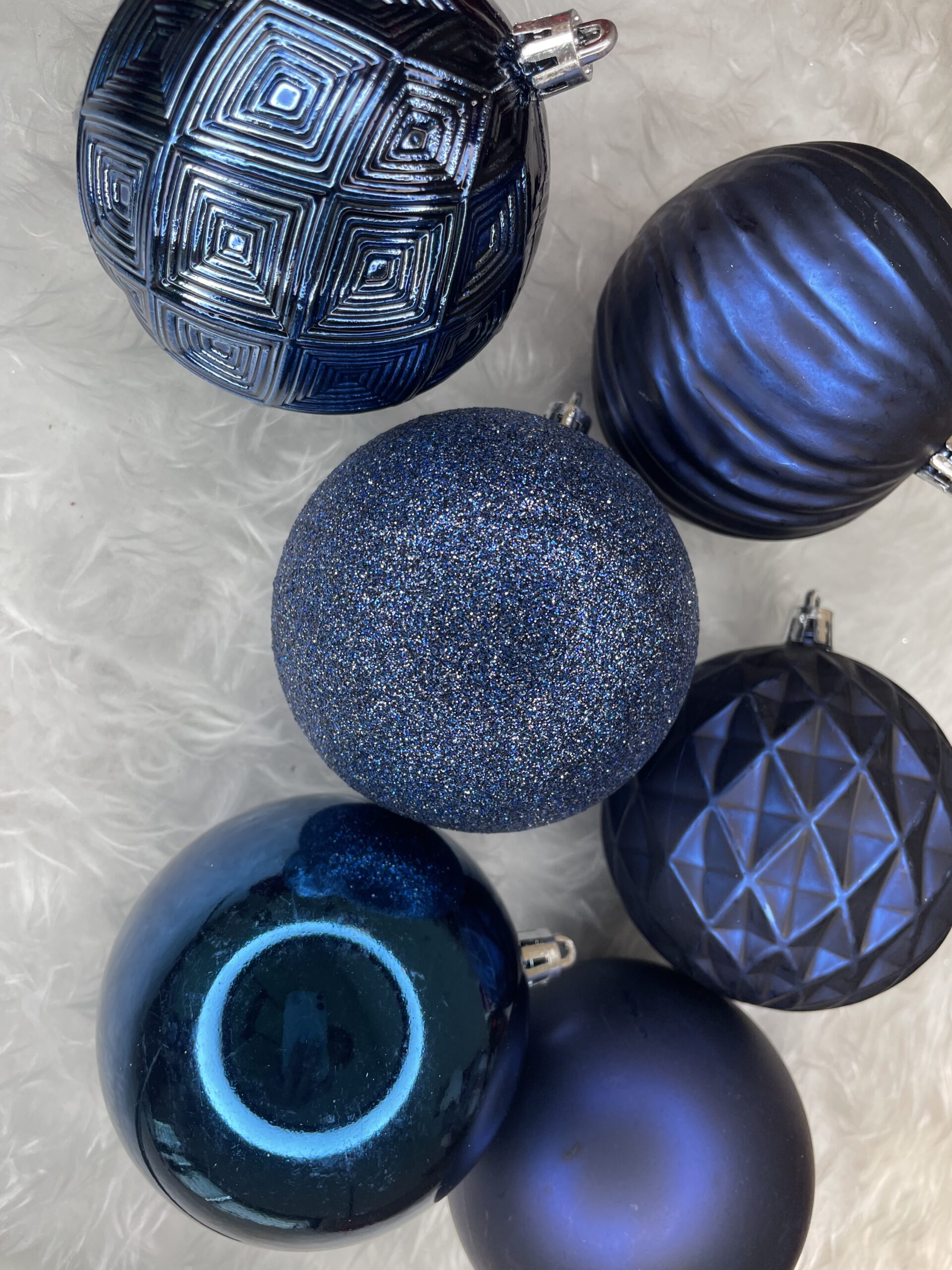 Set 30 globuri de Craciun albastre, 6 modele, 8 cm, din plastic