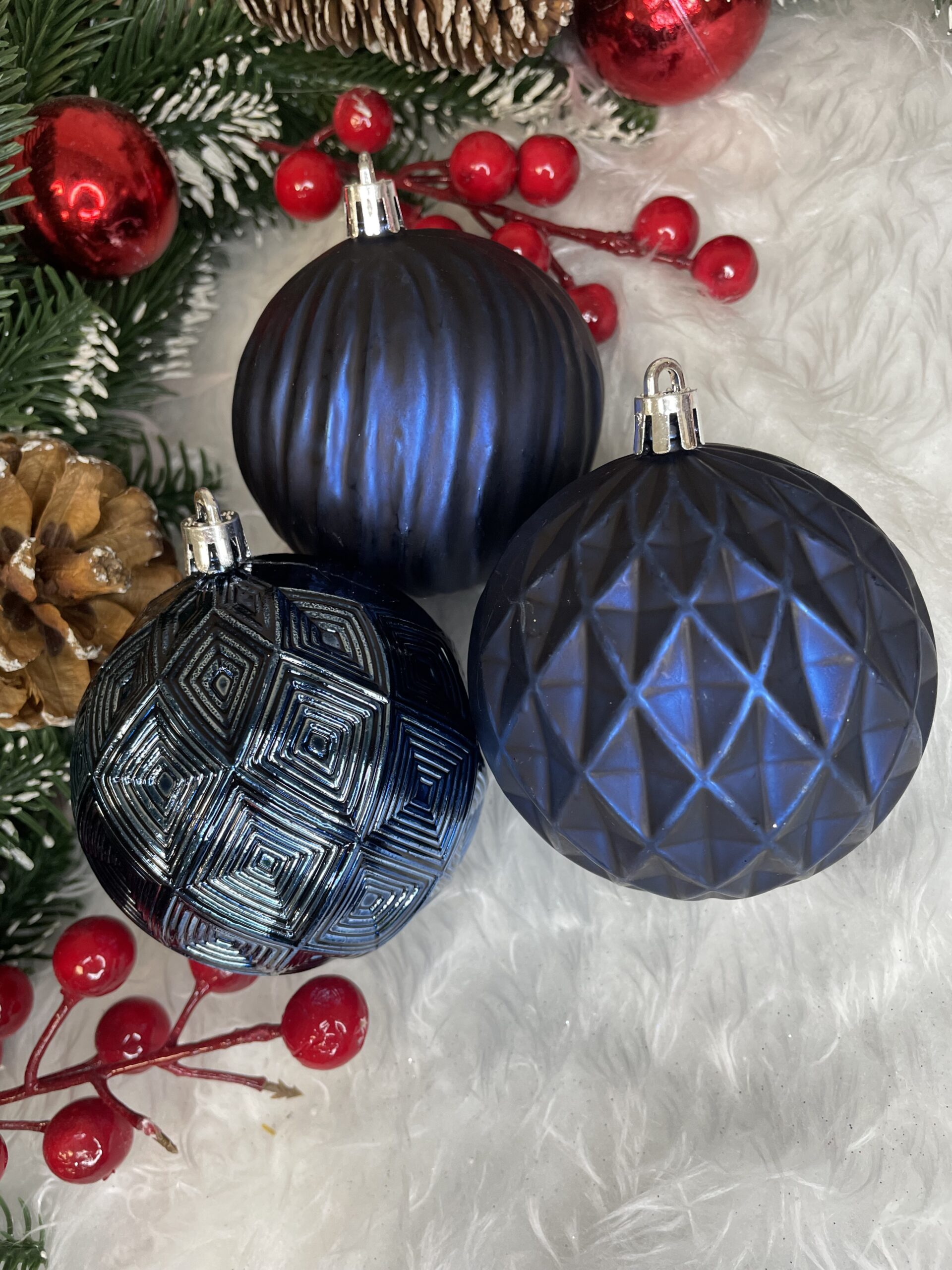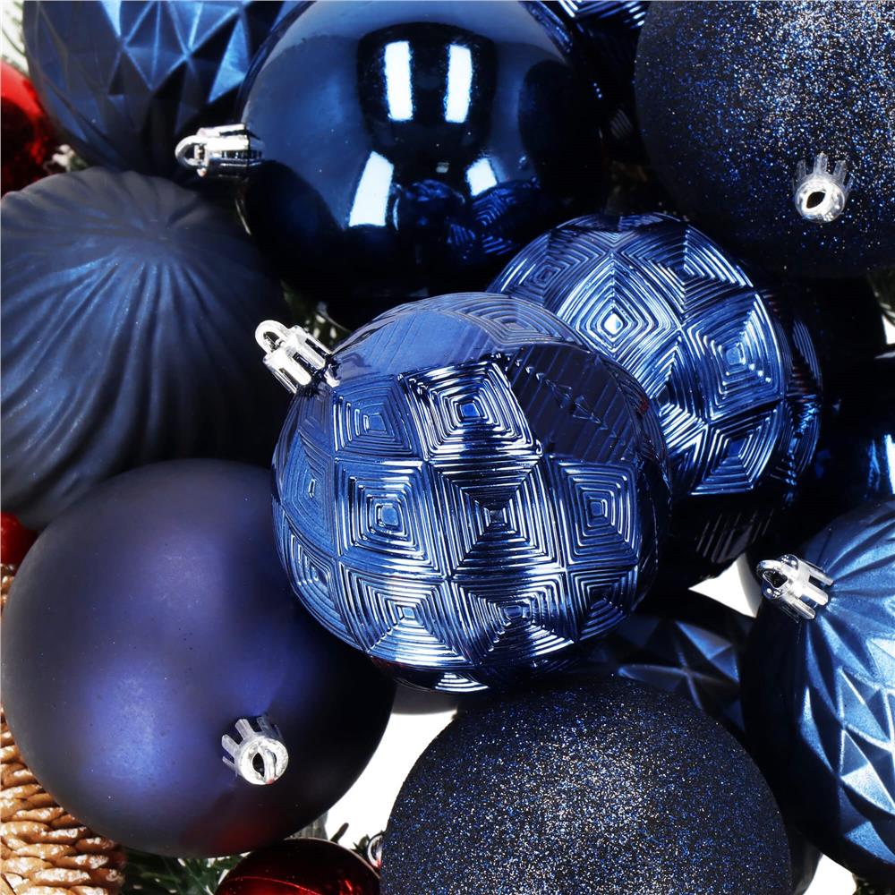 Adauga un plus de eleganta bradului cu acest set de globuri de Craciun in nuante de albastru inchis, potrivit pentru decoruri festive moderne, rafinate si usor de asortat. Cele 30 de globuri au un aspect deosebit, cu finisaje variate si efect stralucitor, fiind ideale pentru pomul de iarna, aranjamente de masa, decorarea usilor sau ambalarea creativa a cadourilor.