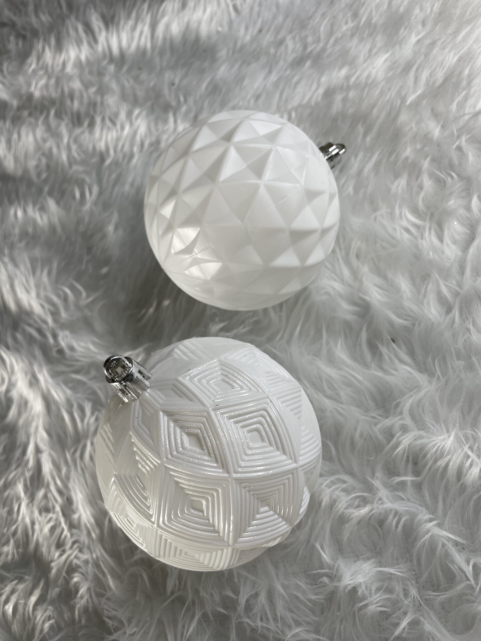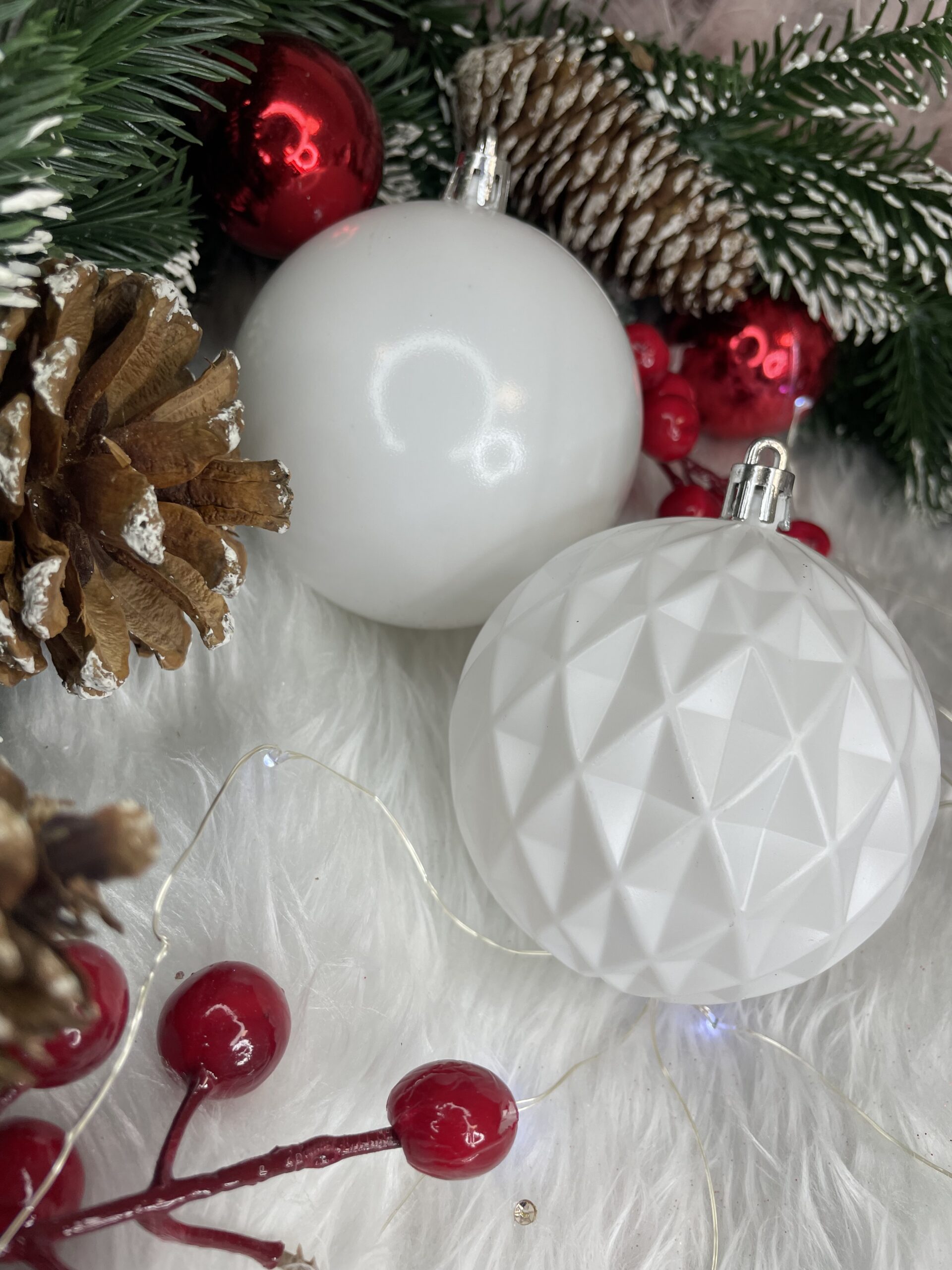 Set 30 globuri de Craciun albe, 8 cm, 6 modele, din plastic