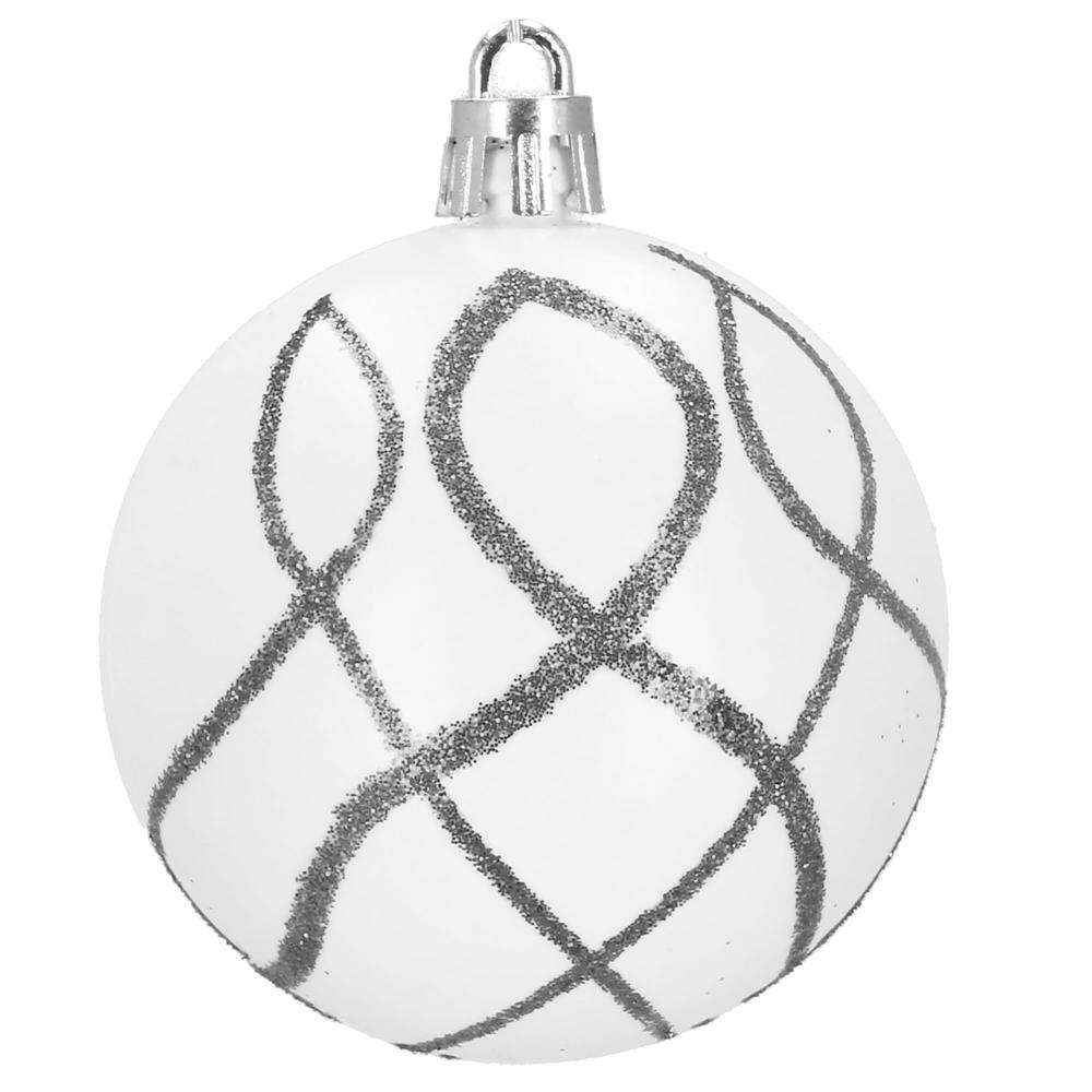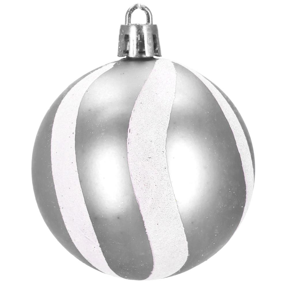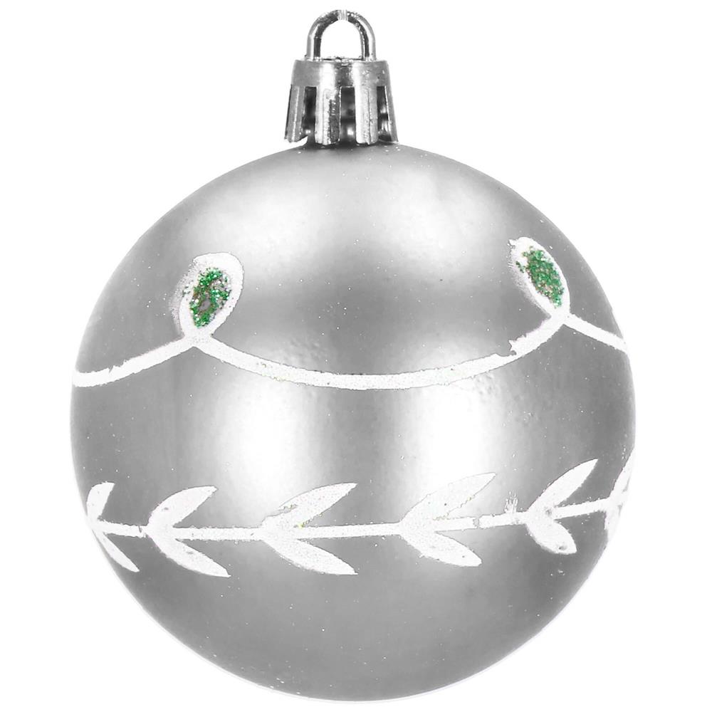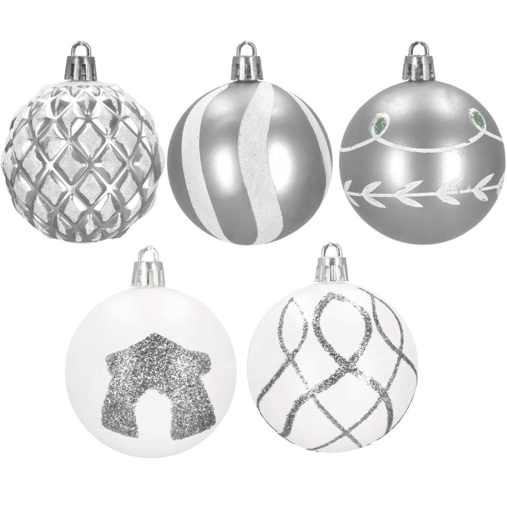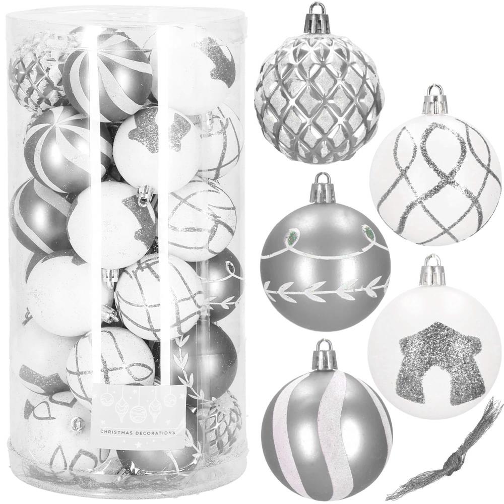 Set 30 globuri de Craciun argintii cu modele festive, 6 cm, incasabile
