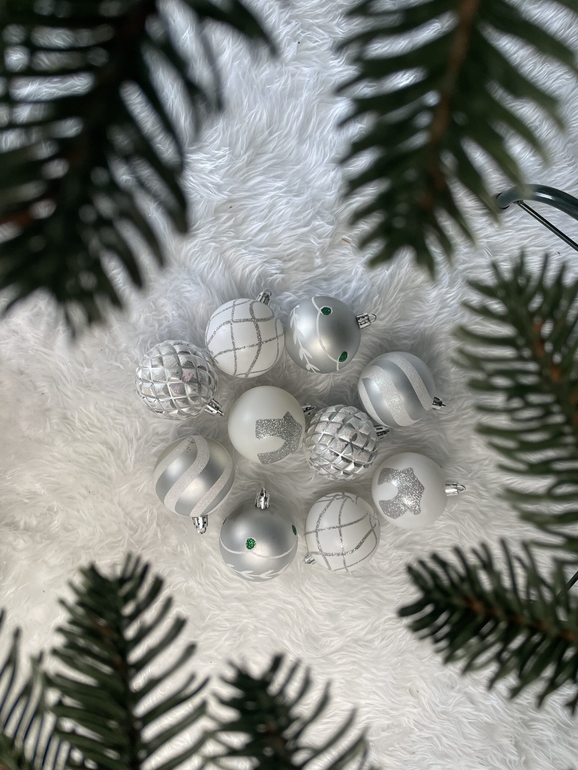 Descriere Set 30 globuri Craciun argintii modele