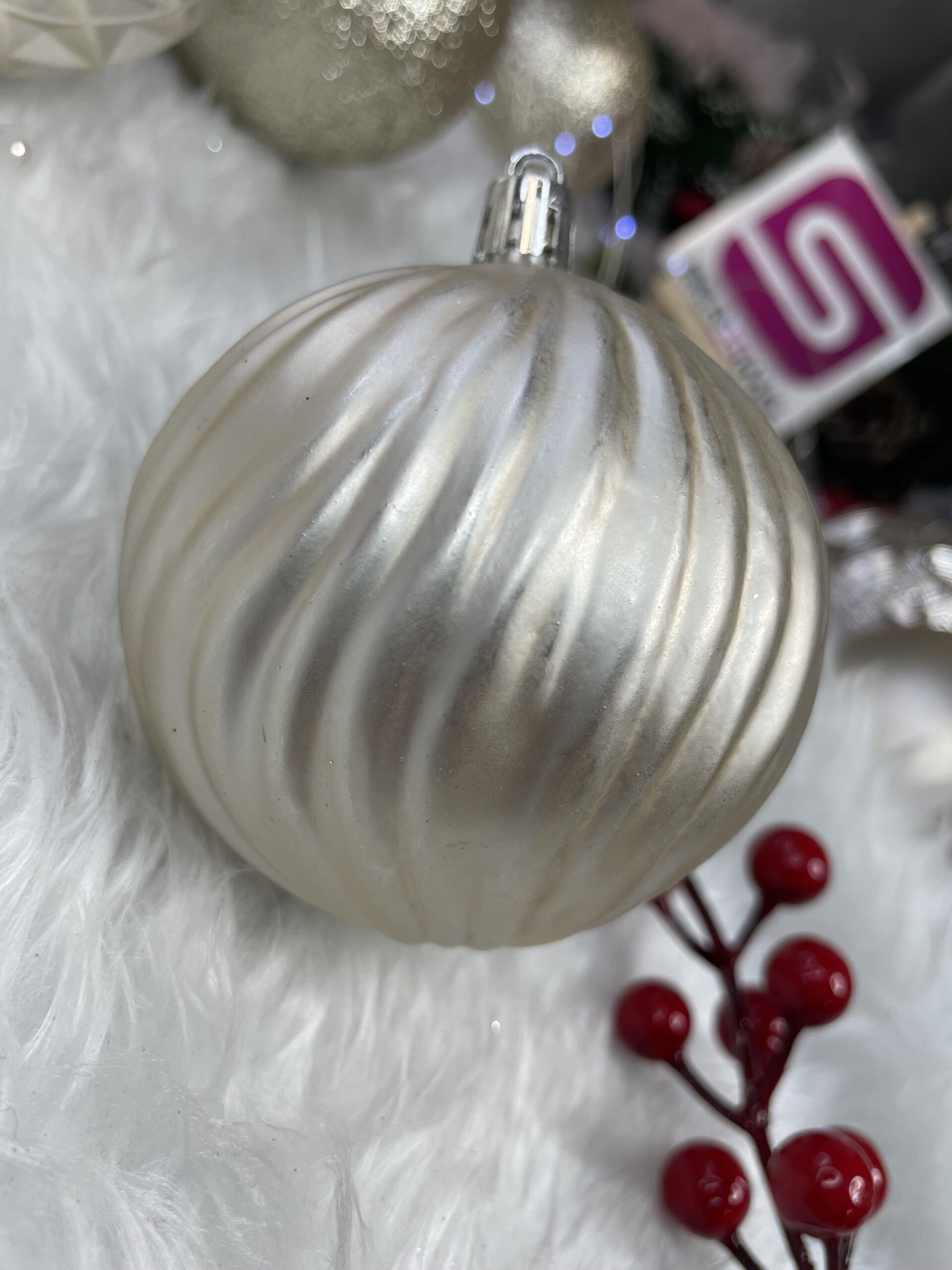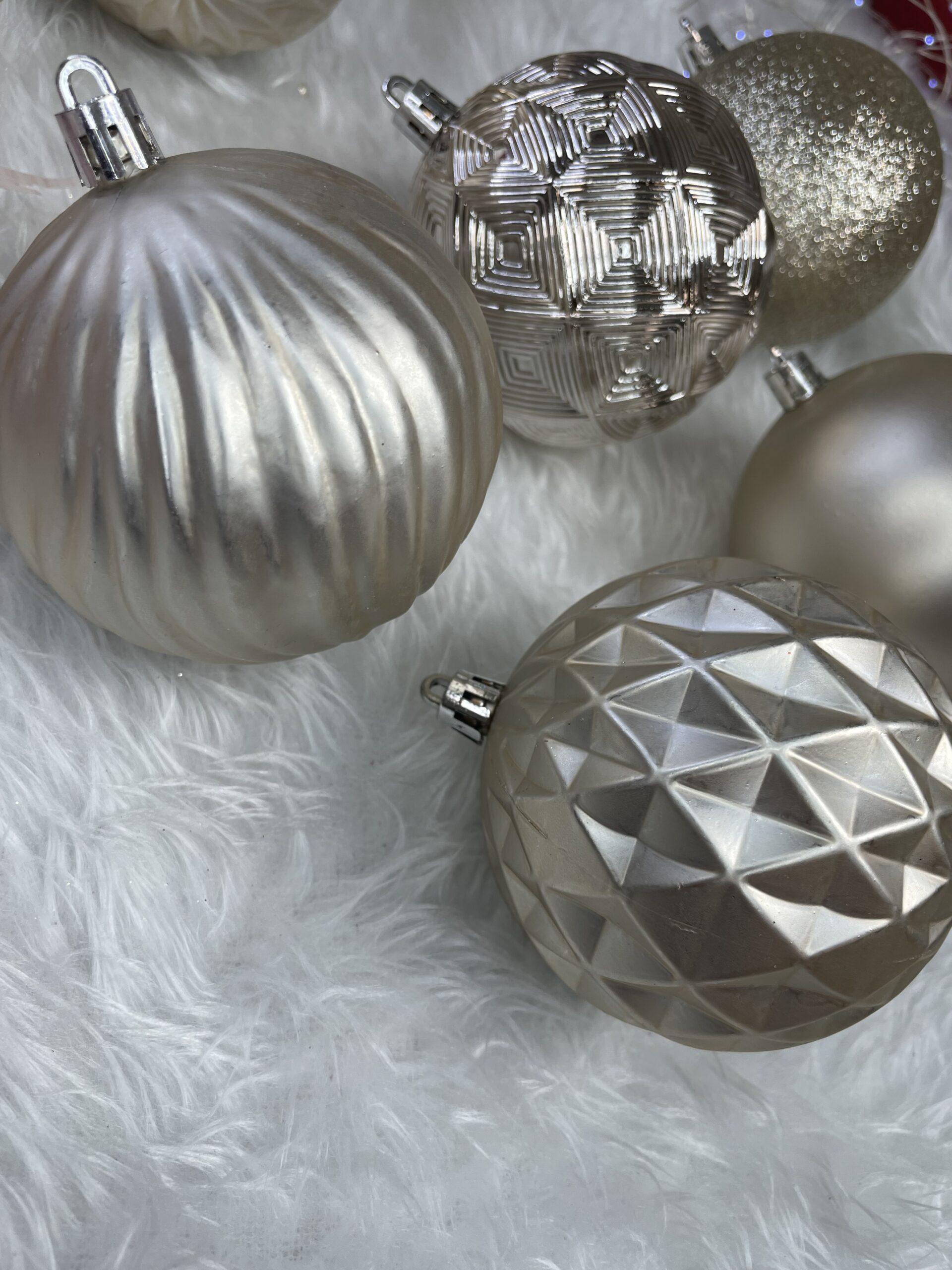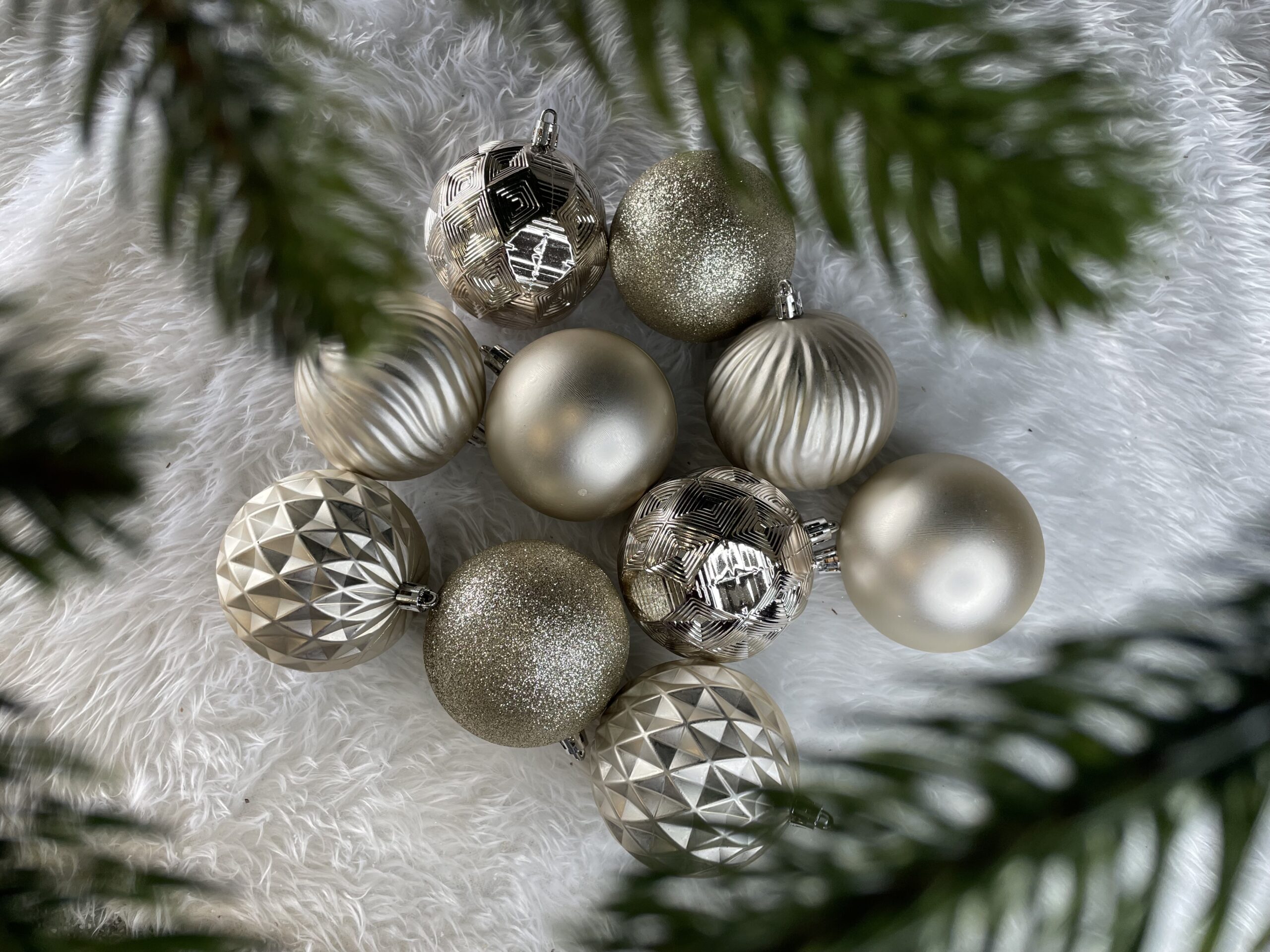 Acest set globuri brad 8 cm este potrivit atat pentru impodobirea completa a bradului, cat si pentru decorarea mesei, ferestrelor, usilor sau pentru ambalaje de cadouri cu tema de iarna. Snururile pentru agatare sunt incluse, astfel incat globurile pot fi folosite imediat.