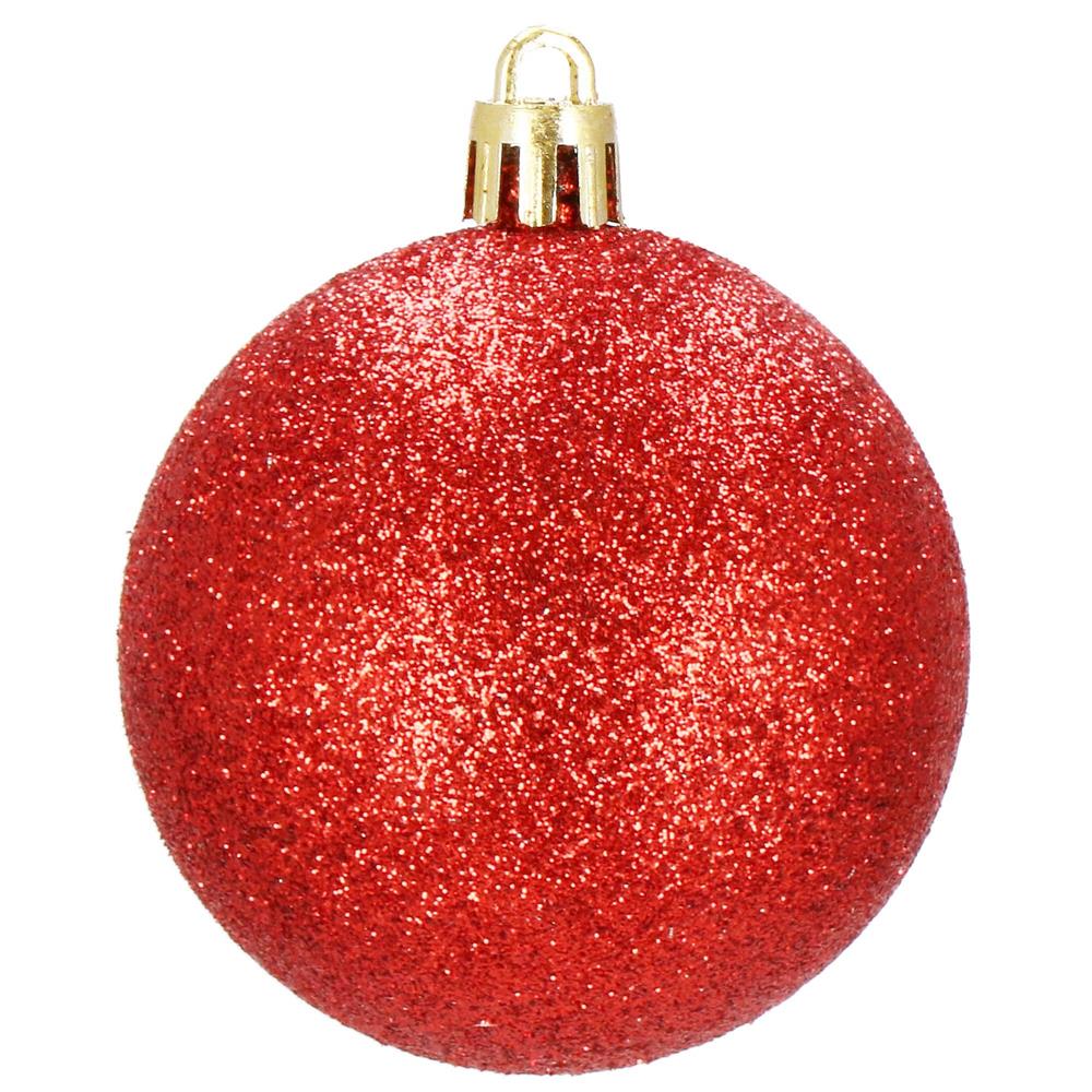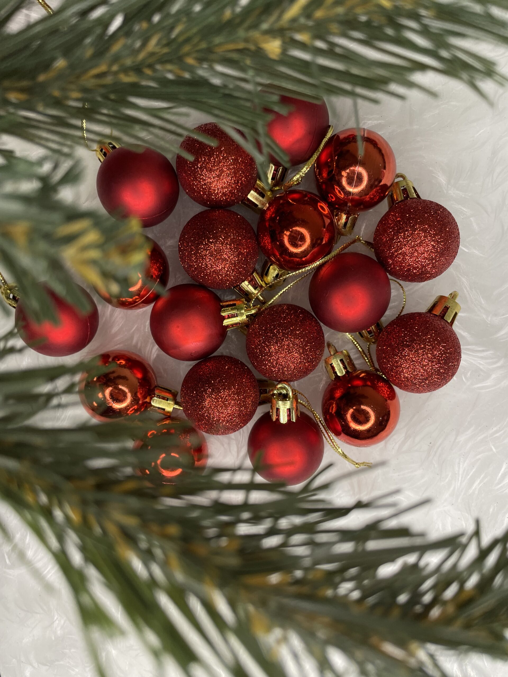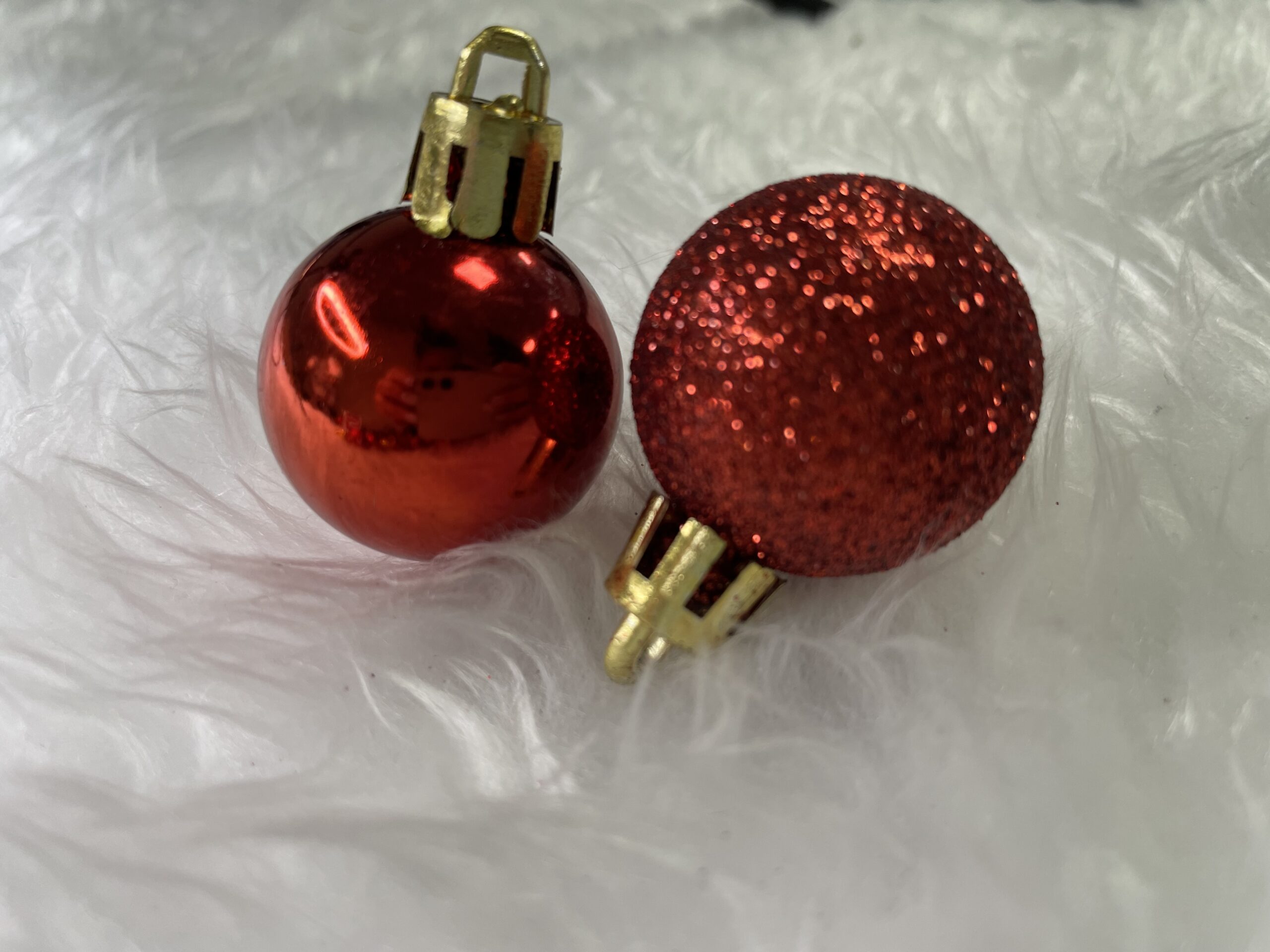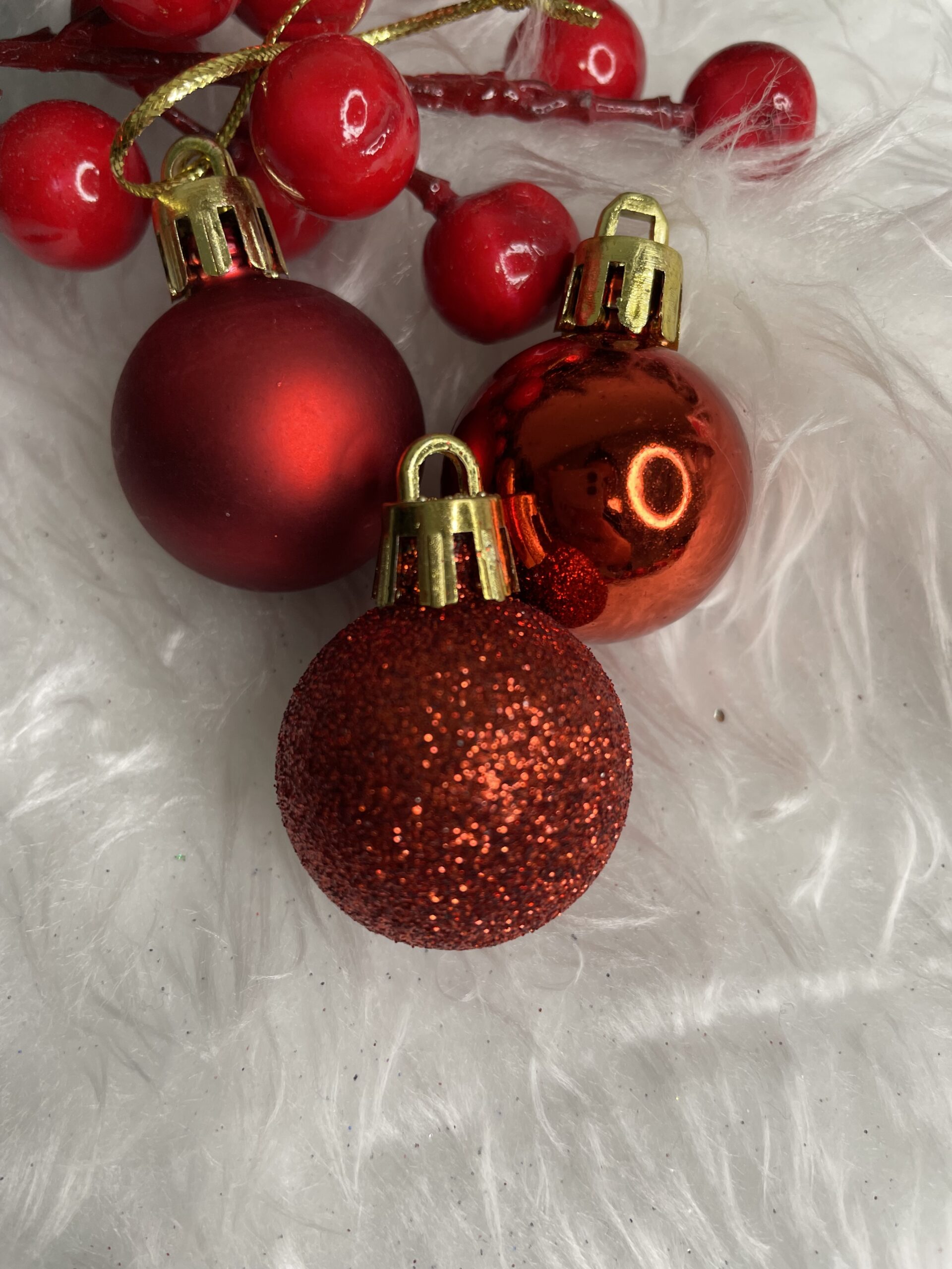 Set 30 globuri de Craciun rosii, 3 modele, 3 cm, incasabile