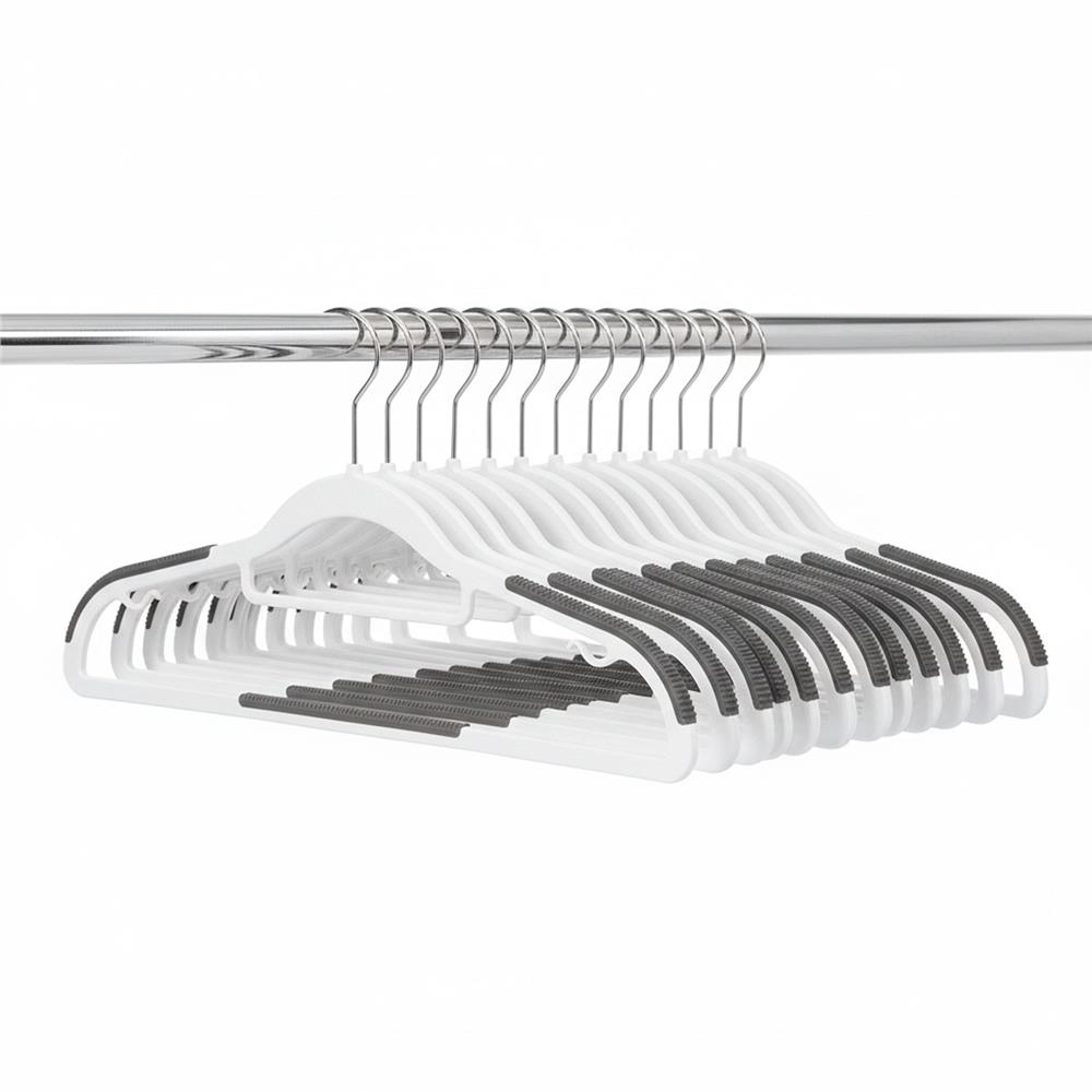 Organizeaza-ti garderoba mai usor cu acest set de 30 umerase antiderapante pentru haine, potrivit pentru camasi, bluze, rochii, pantaloni sau jachete usoare. Designul ergonomic ajuta la pastrarea formei hainelor, iar zonele antiderapante de pe umeri si bara inferioara reduc riscul de alunecare. Fiecare umeras cu carlig rotativ 360° iti ofera flexibilitate la asezarea hainelor in dulap, pe bara sau pe suport.