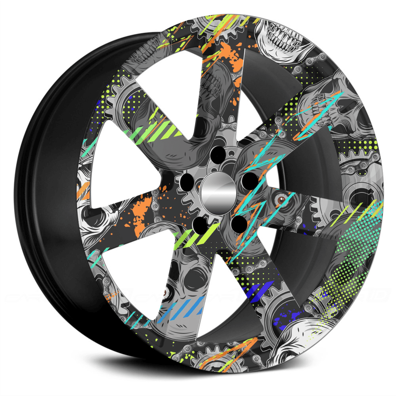 Set Folii Auto pentru Colantare Jante, un produs de inalta calitate imprimat cu Solventi Outdoor, rezistenta indelungata la exterior, dedicat pasionatilor de tuning, competitii auto, show-uri auto. Dimensiunea produsului (Ø 60 cm) este suficienta pentru a colanta jante de pana la 21".