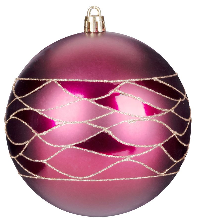 Set 4 globuri de Craciun bordo mate cu decor, pentru brad, 10 cm