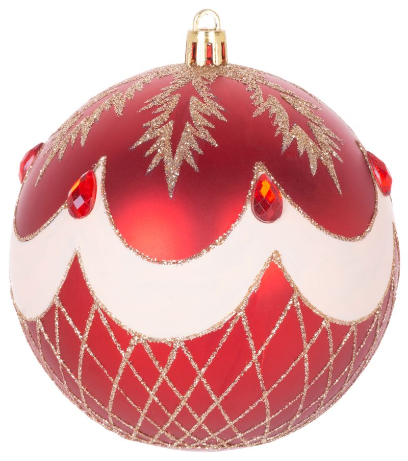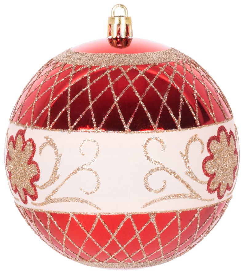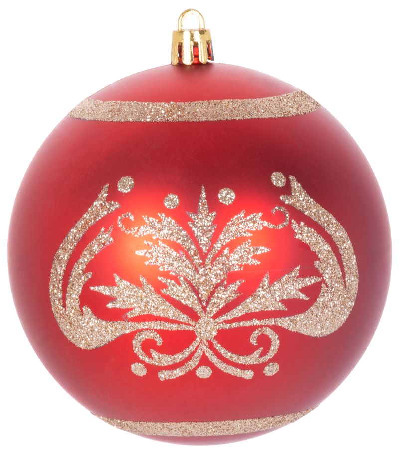Set 4 globuri rosii pentru brad, cu ornamente festive, 10 cm