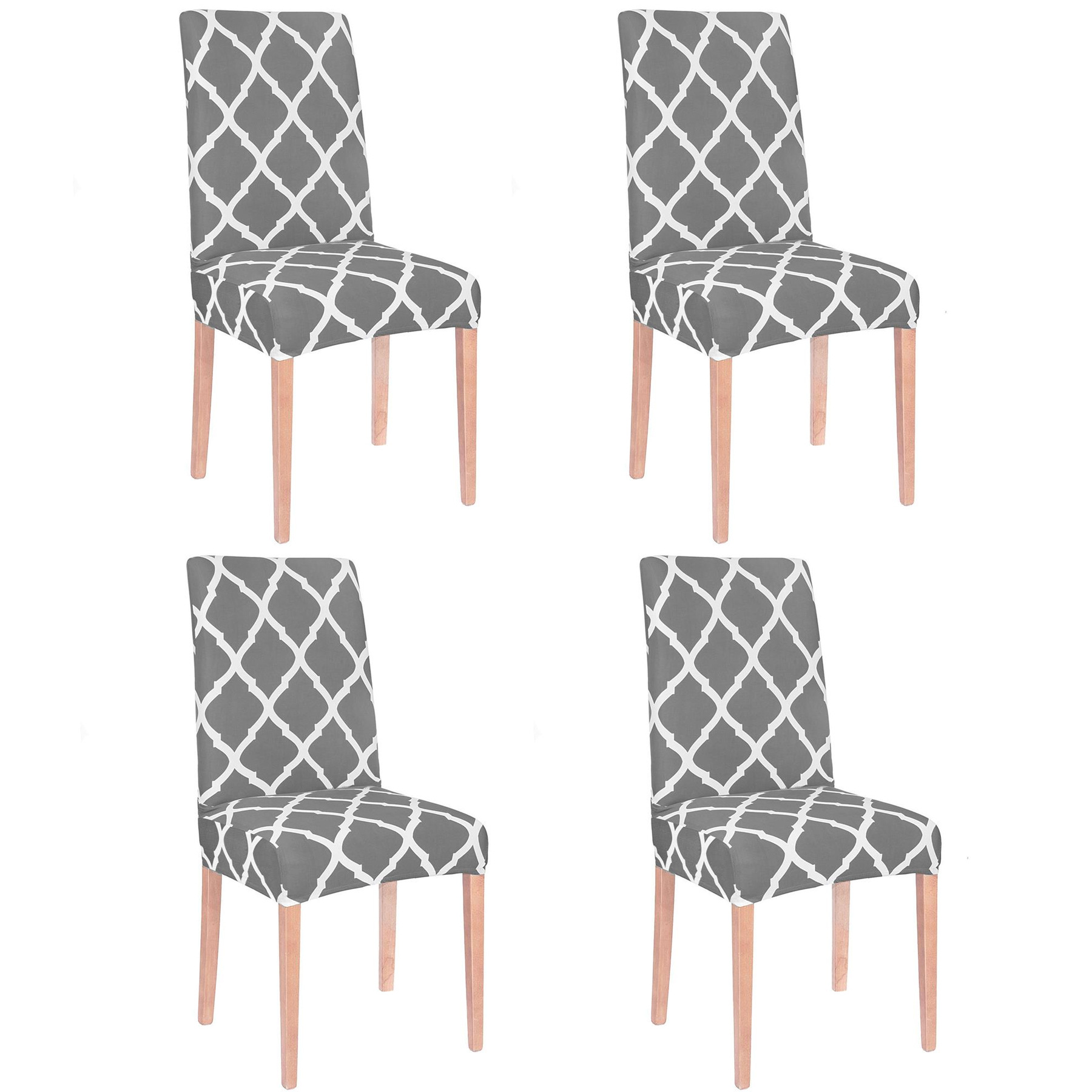 Set 4 huse elastice universale pentru scaun, gri-alb, Sersimo