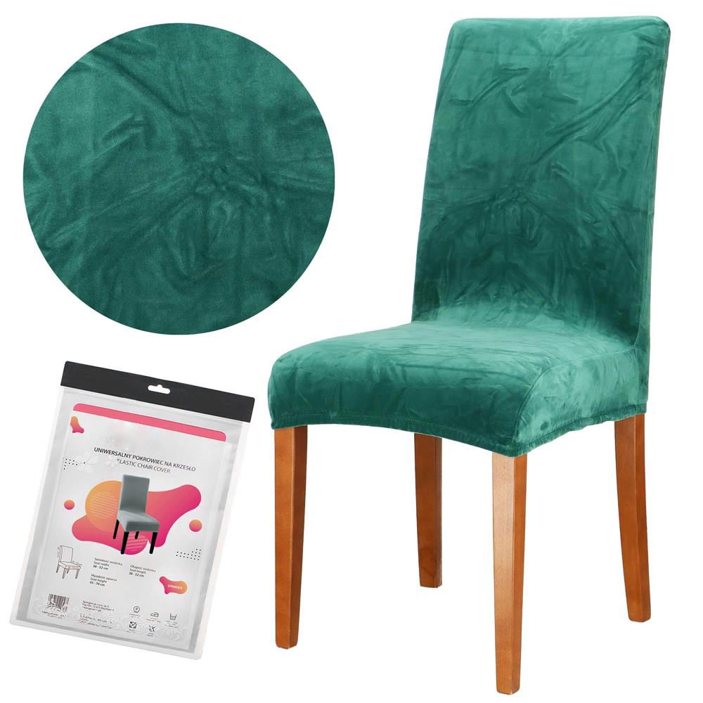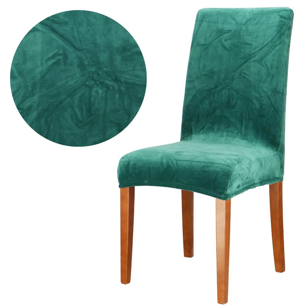 Set 4 huse pentru scaun catifelata, marime universala, poliester si spandex, verde Household NewTrend