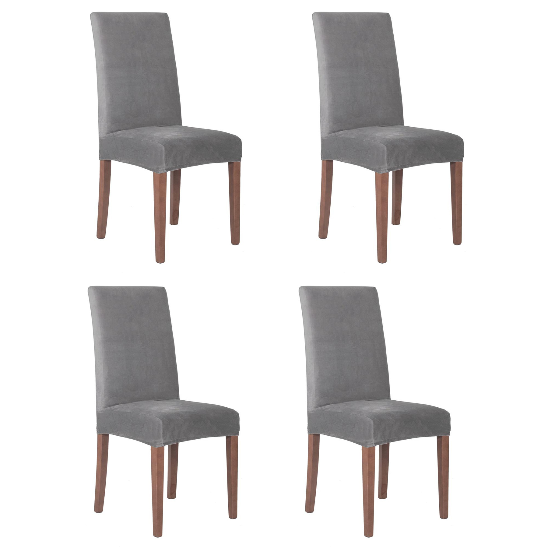 Set 4 huse universale pentru scaun, gri, elastice, tip catifea