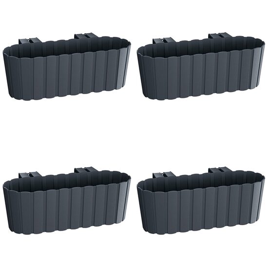 Set 4 jardiniere decorative cu suport de plastic, antracit, 4.9 L, 38.3x21.2x13 cm, Boardee Hook GartenVIP DiyLine