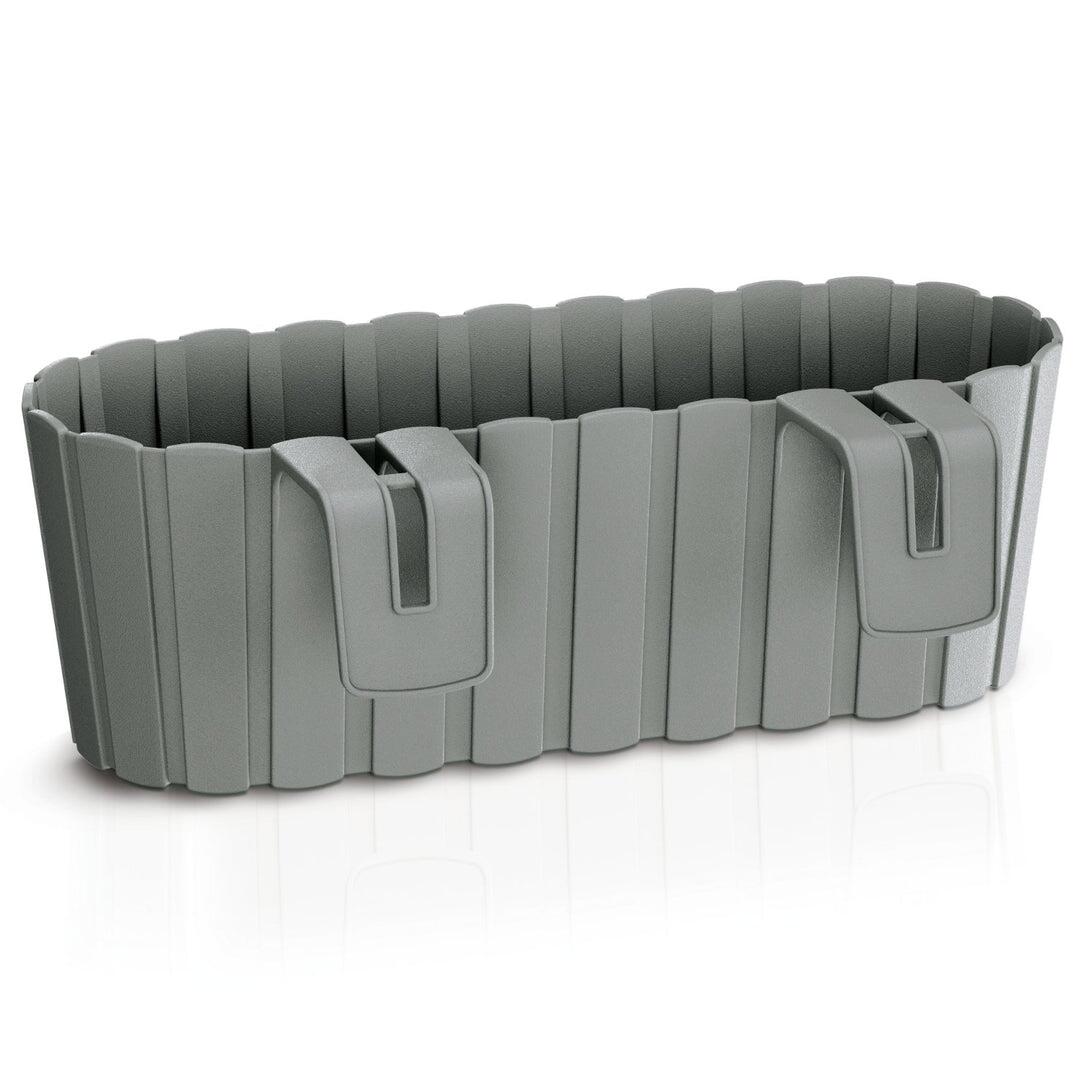 Simplifica decorarea balconului cu jardiniera Boardee Hook, solutia "totul-intr-unul" pentru spatii restranse. Designul inteligent include suporti de plastic integrati in structura vasului, permitand o instalare instantanee pe balustrada fara a mai fi nevoie de accesorii metalice suplimentare. Textura sa de gard traditional (uluci) in nuanta gri stone aduce un farmec rustic si ordonat oricarei ferestre sau terase.