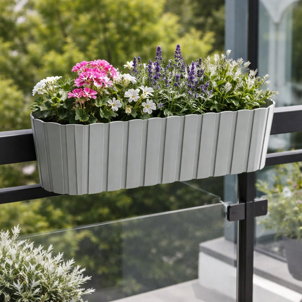 Design Compact si Eficient: Cu o lungime de 38 cm si un volum de 4.9 litri, este ideala pentru balcoane mici sau pentru a crea succesiuni de jardiniere pe aceeasi balustrada.