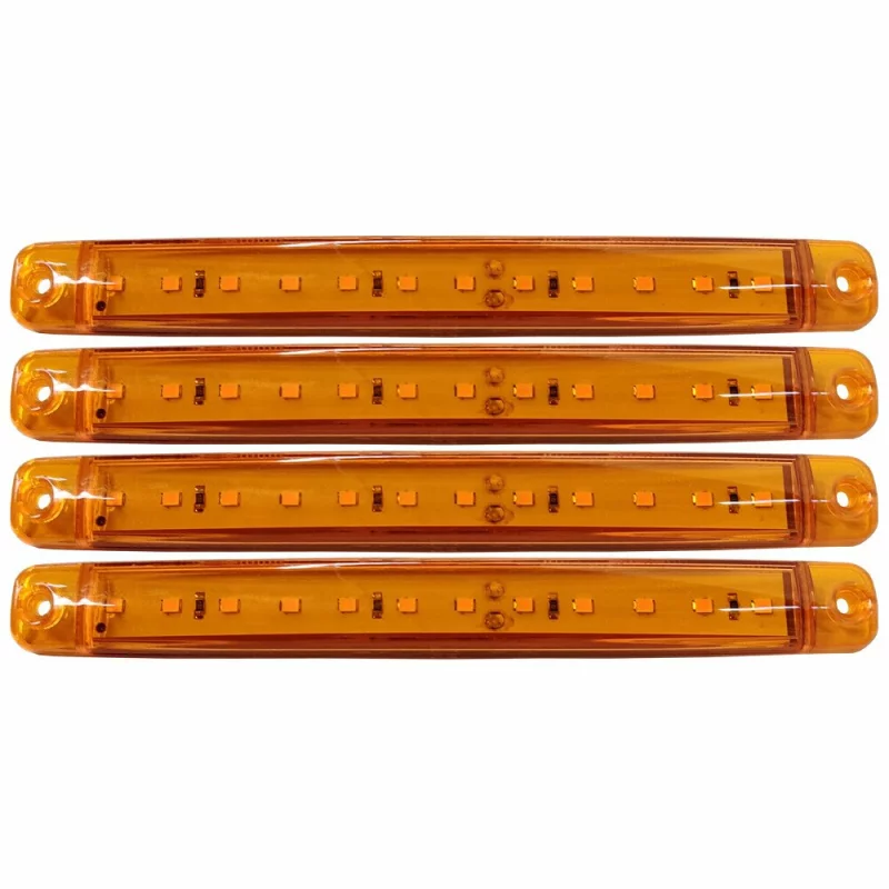 Alege acest set de 4 lampi gabarit LED Cridem pentru o semnalizare laterala clara si eficienta pe vehicule alimentate la 12/24V. Cu lentile galbene si 12 LED-uri SMD pentru fiecare lampa, produsul ofera vizibilitate buna in trafic si un consum redus de energie. Este o solutie practica pentru camion, remorca, semiremorca sau alte aplicatii auto unde este necesara o lampa gabarit galbena fiabila.