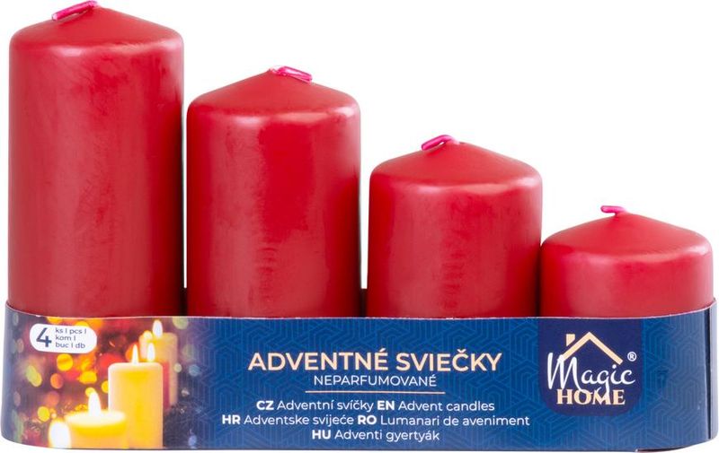 Set 4 lumanari advent rosii MagicHome, decorative, 48x60/80/100/120 mm