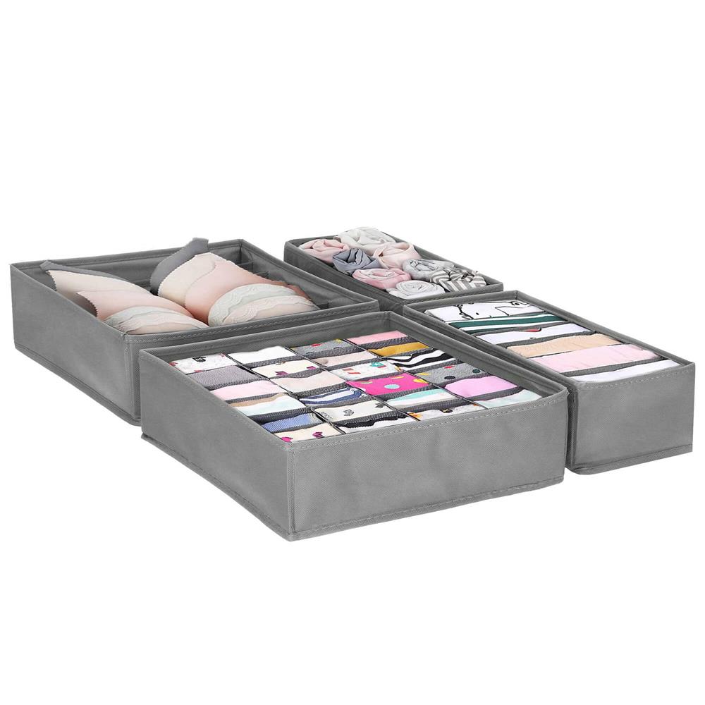 Set 4 organizatoare pentru sertar Sersimo, gri, pentru sosete si lenjerie
