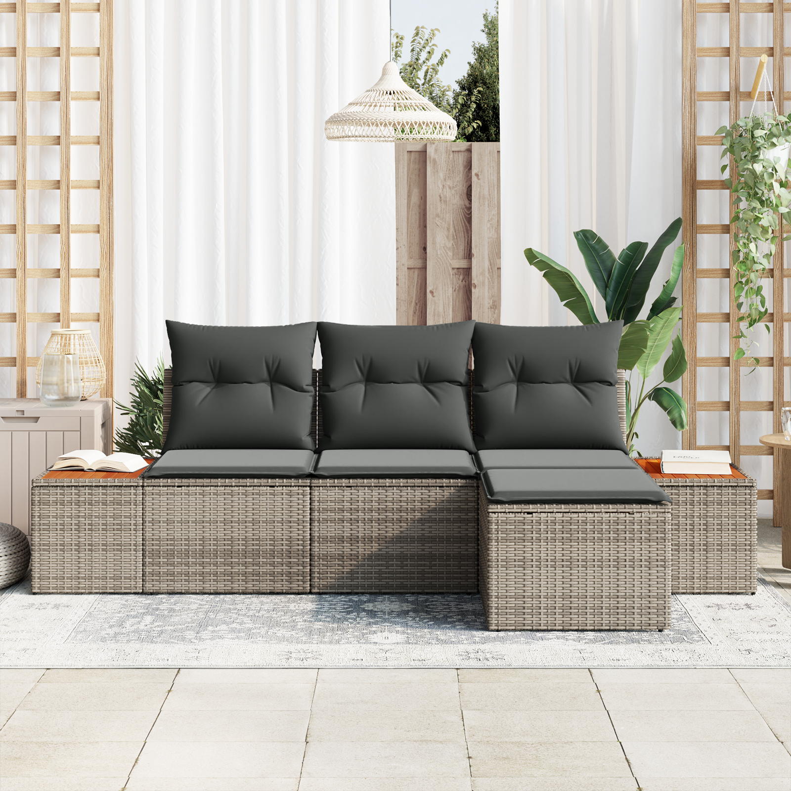 Set 4 Piese Canapele Grădină cu Perne Gri din Ratan Polimeric Acacia, Canapea Grădină 2 Locuri cu Depozitare și Perne Gri din Ratan Polimeric GartenMobel Dekor