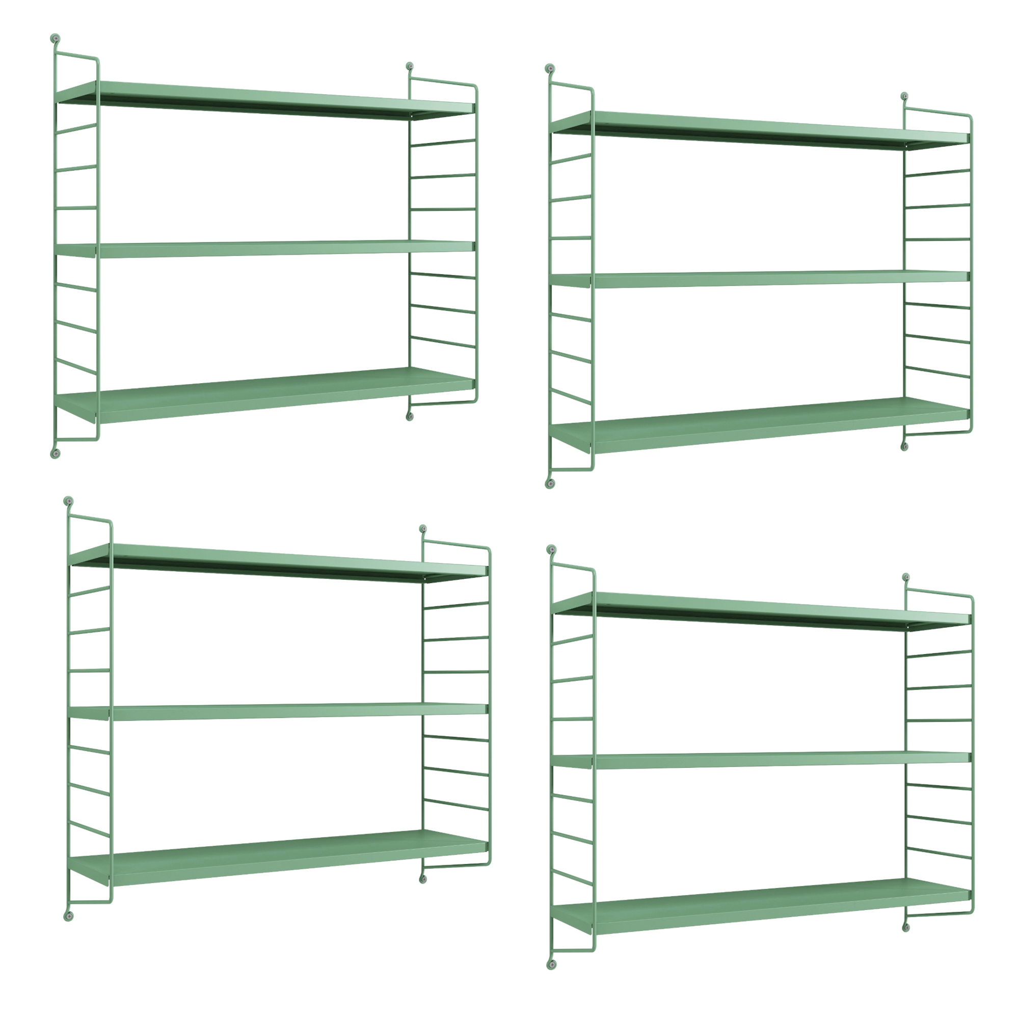 Set 4 rafturi de perete modulare Strängnäs, verde pastel, metal