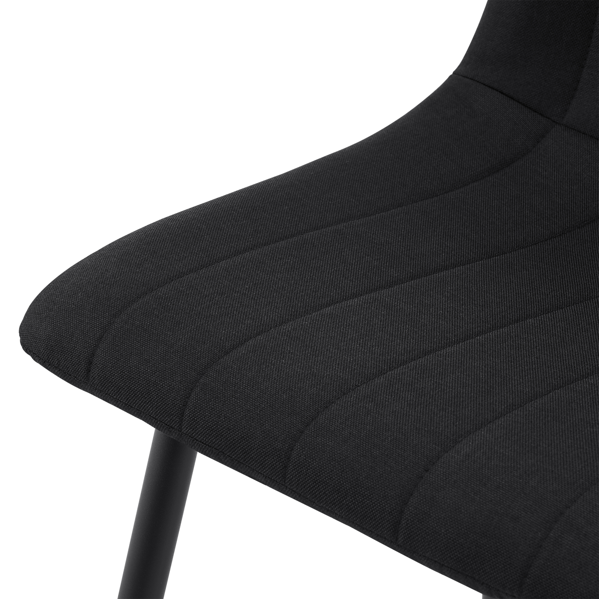 Fiecare scaun este prevăzut cu șezut tapițat, oferind un plus de confort la mesele de zi cu zi, la cinele prelungite sau atunci când ai musafiri. Cele patru picioare metalice asigură o bază stabilă și o utilizare sigură pe termen lung, iar nuanța neagră adaugă un aspect rafinat și ușor de asortat.