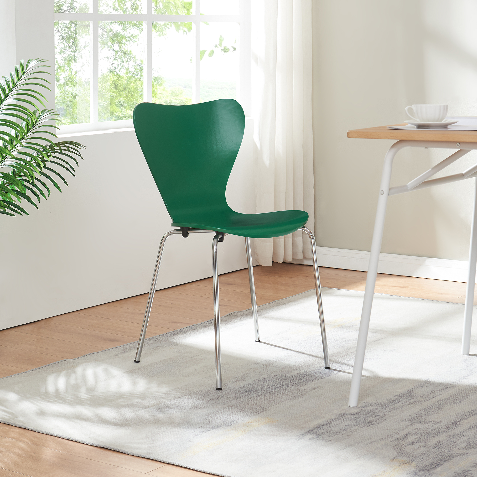 Adauga un plus de stil si functionalitate in casa ta cu acest set de 4 scaune dining Essunga. Cu un design modern, o forma ergonomica si o combinatie eleganta de verde intens cu picioare metalice cromate, aceste scaune bucatarie sunt ideale pentru mesele de zi cu zi, intalniri cu familia sau amenajarea unui spatiu contemporan.