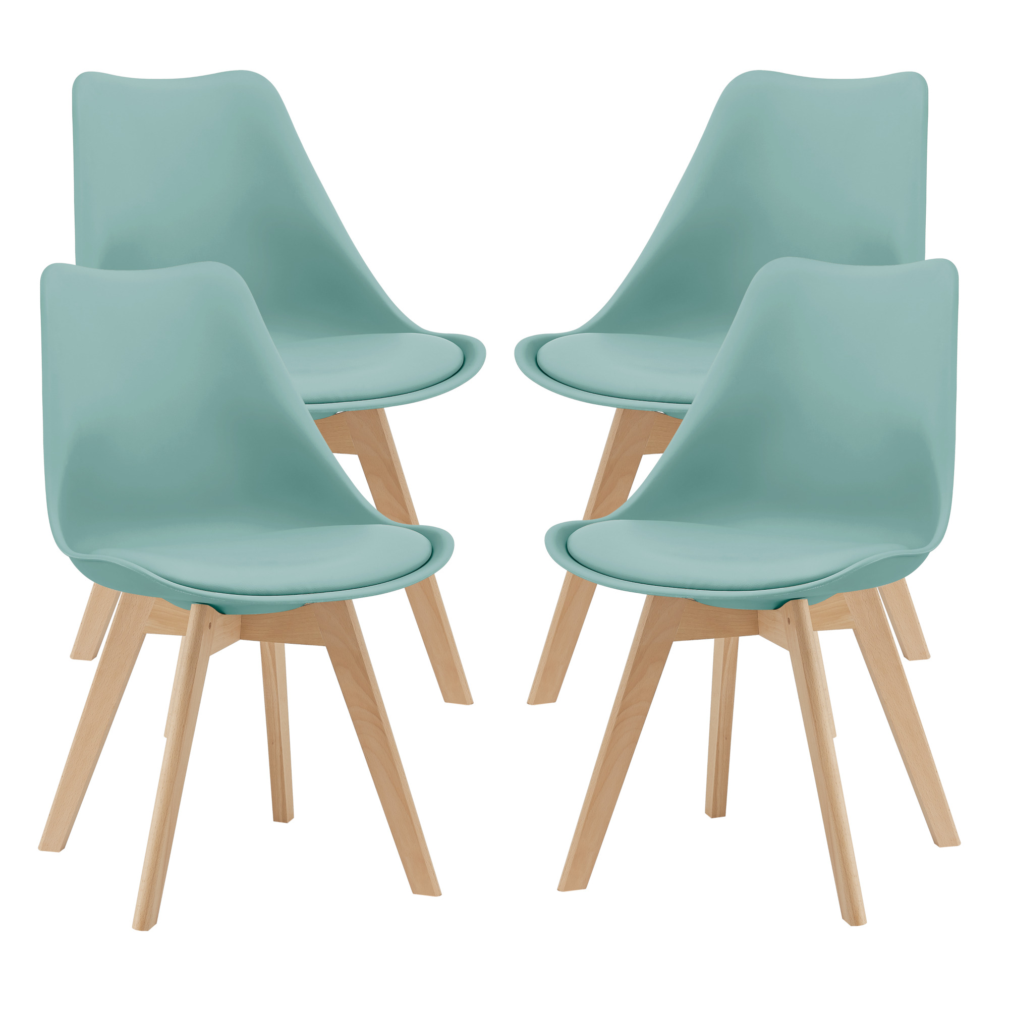 Set 4 scaune dining Flăten, mentă, cu șezut tapițat și picioare din lemn