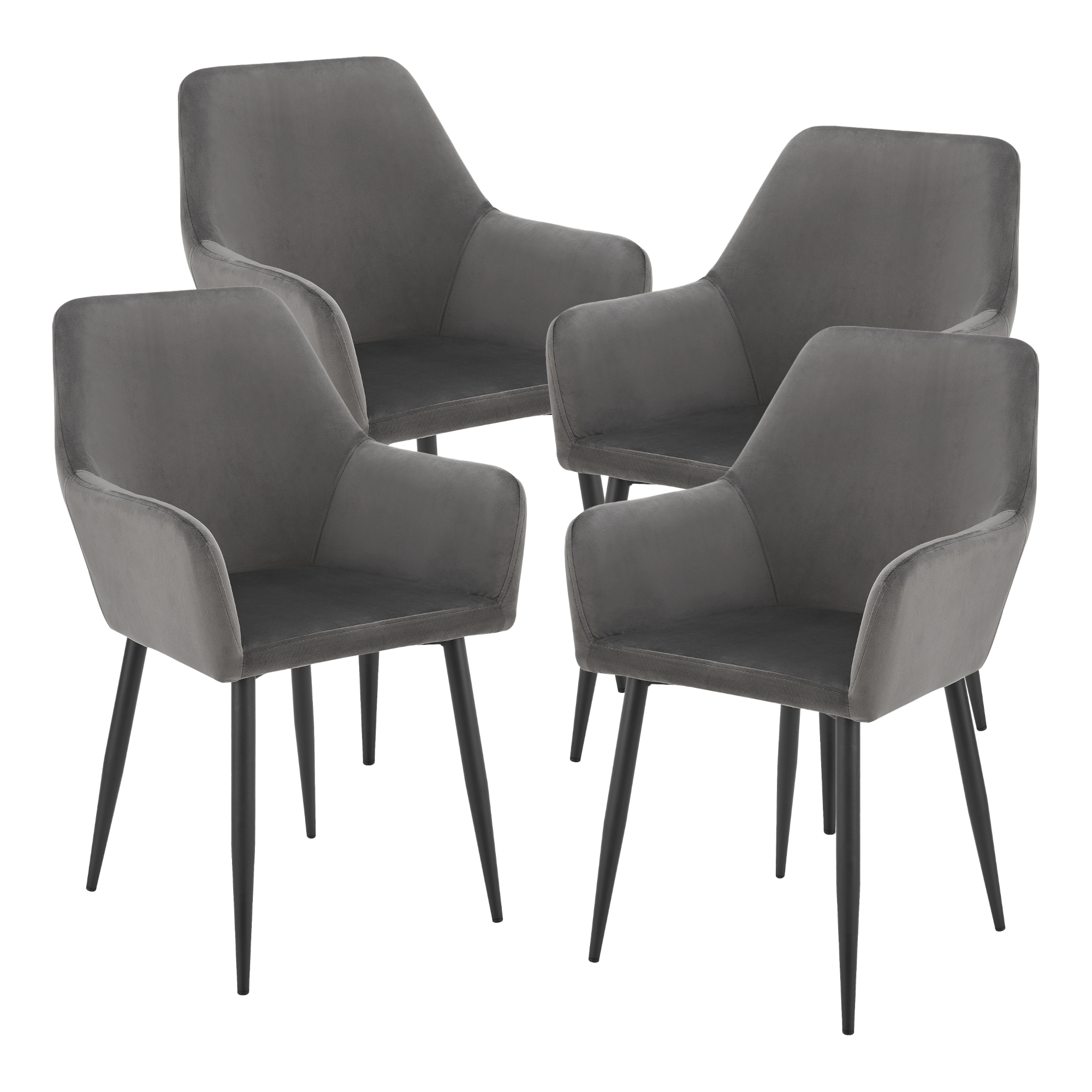 Set 4 scaune dining Hollola cu brațe, catifea gri închis, [en.casa]
