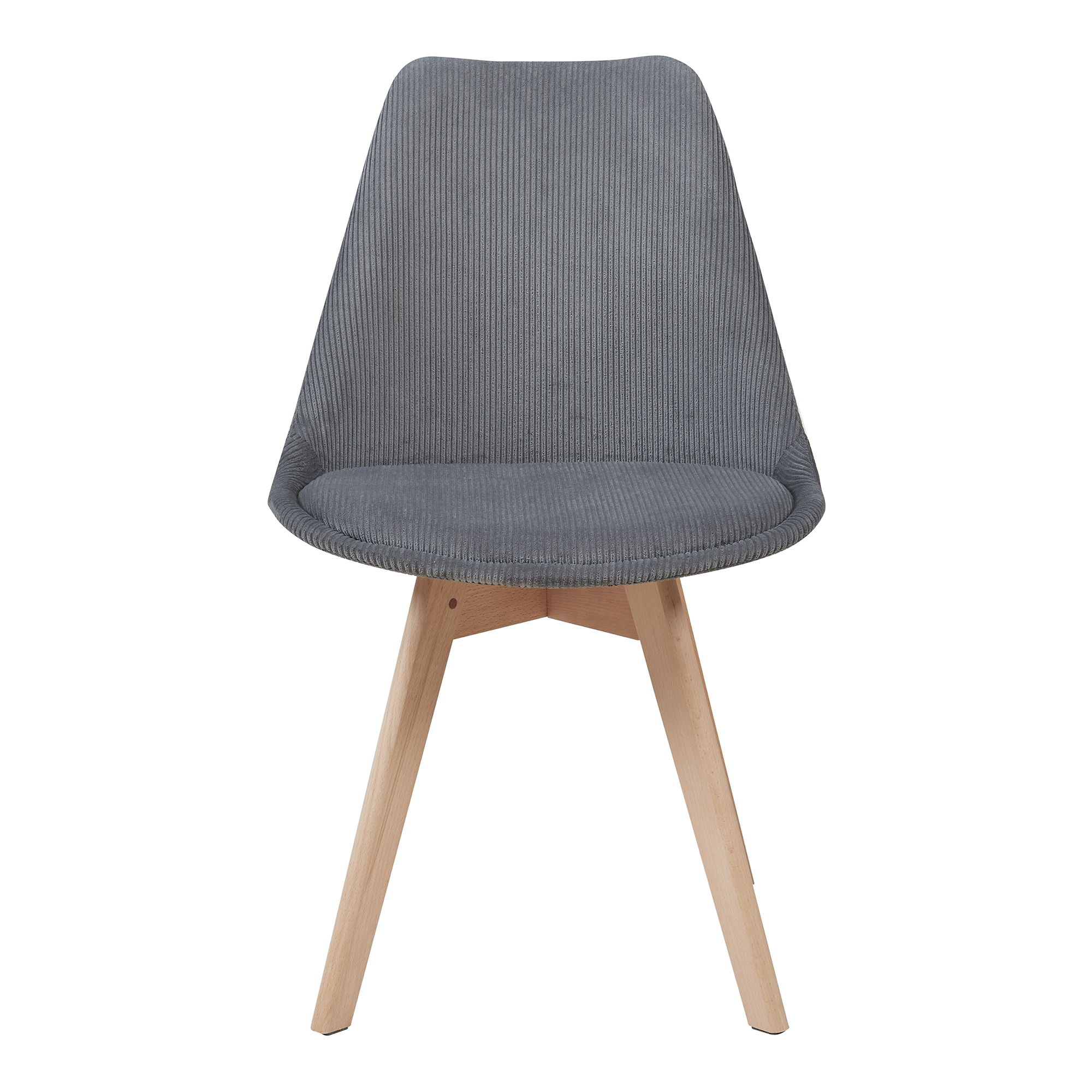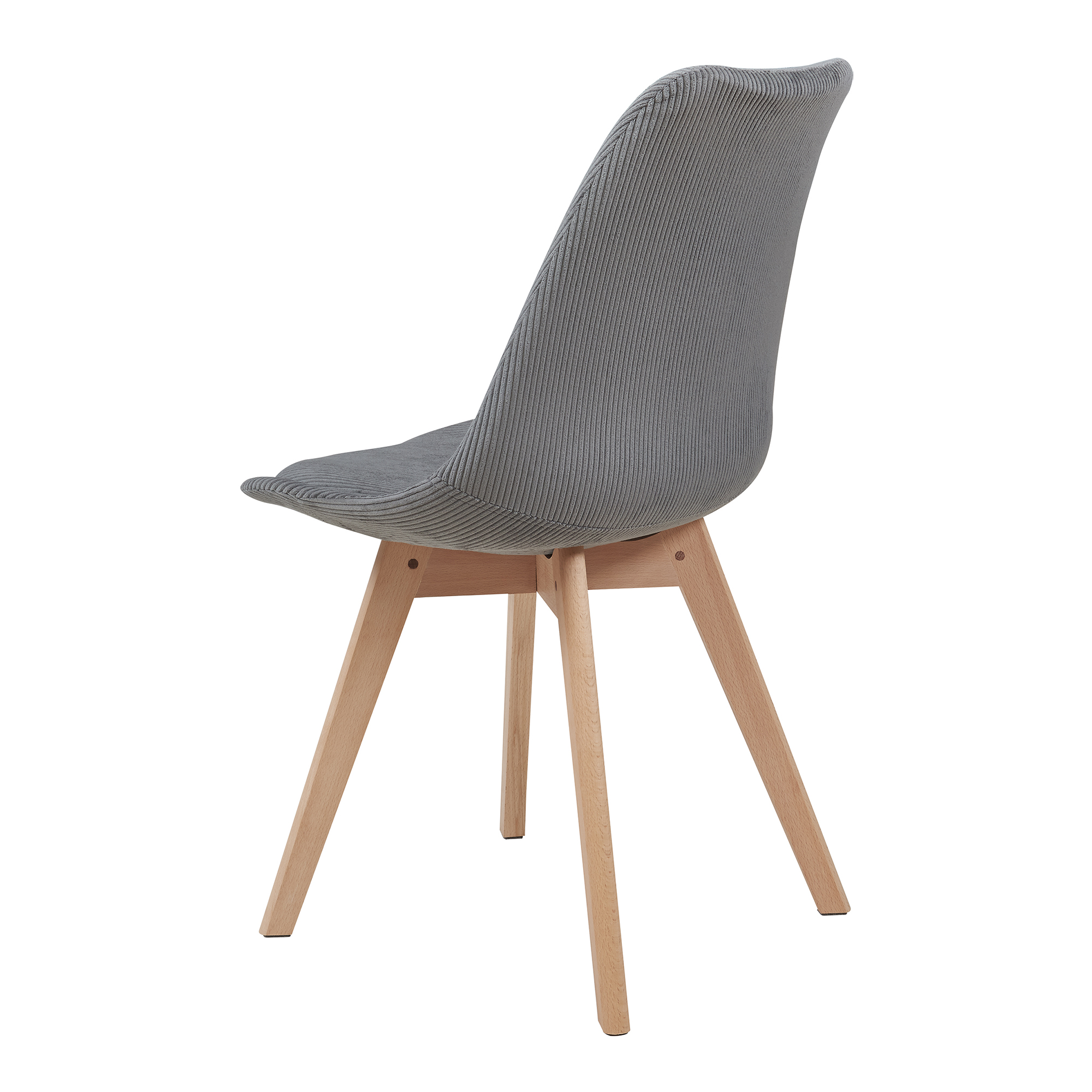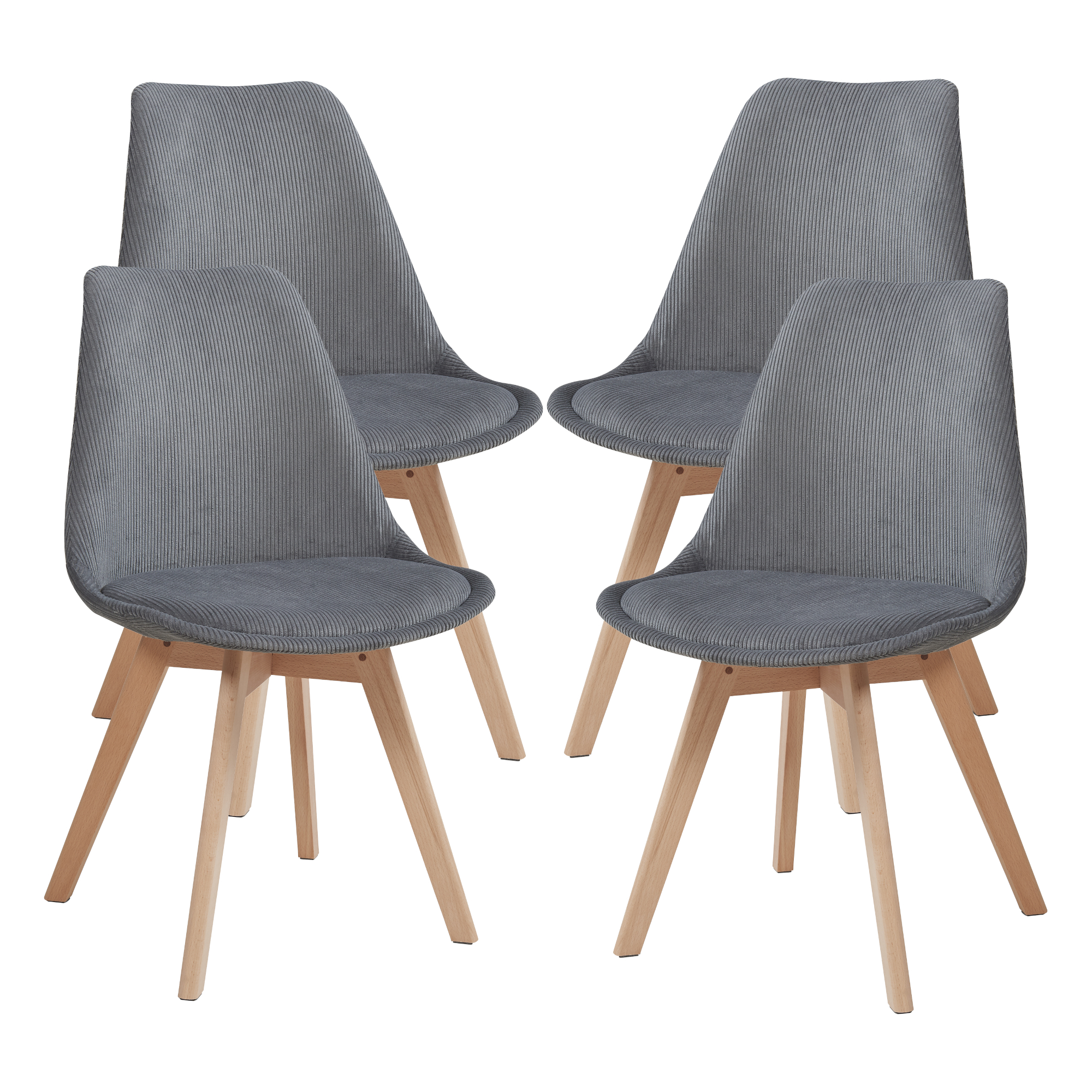 Set 4 scaune dining tapițate – alegerea ideală pentru un decor modern, primitor și confortabil. Aceste scaune dining gri se remarcă prin designul elegant, tapițeria din cord plăcută la atingere și picioarele rezistente din lemn de fag, potrivindu-se excelent în bucătărie, sufragerie sau living.