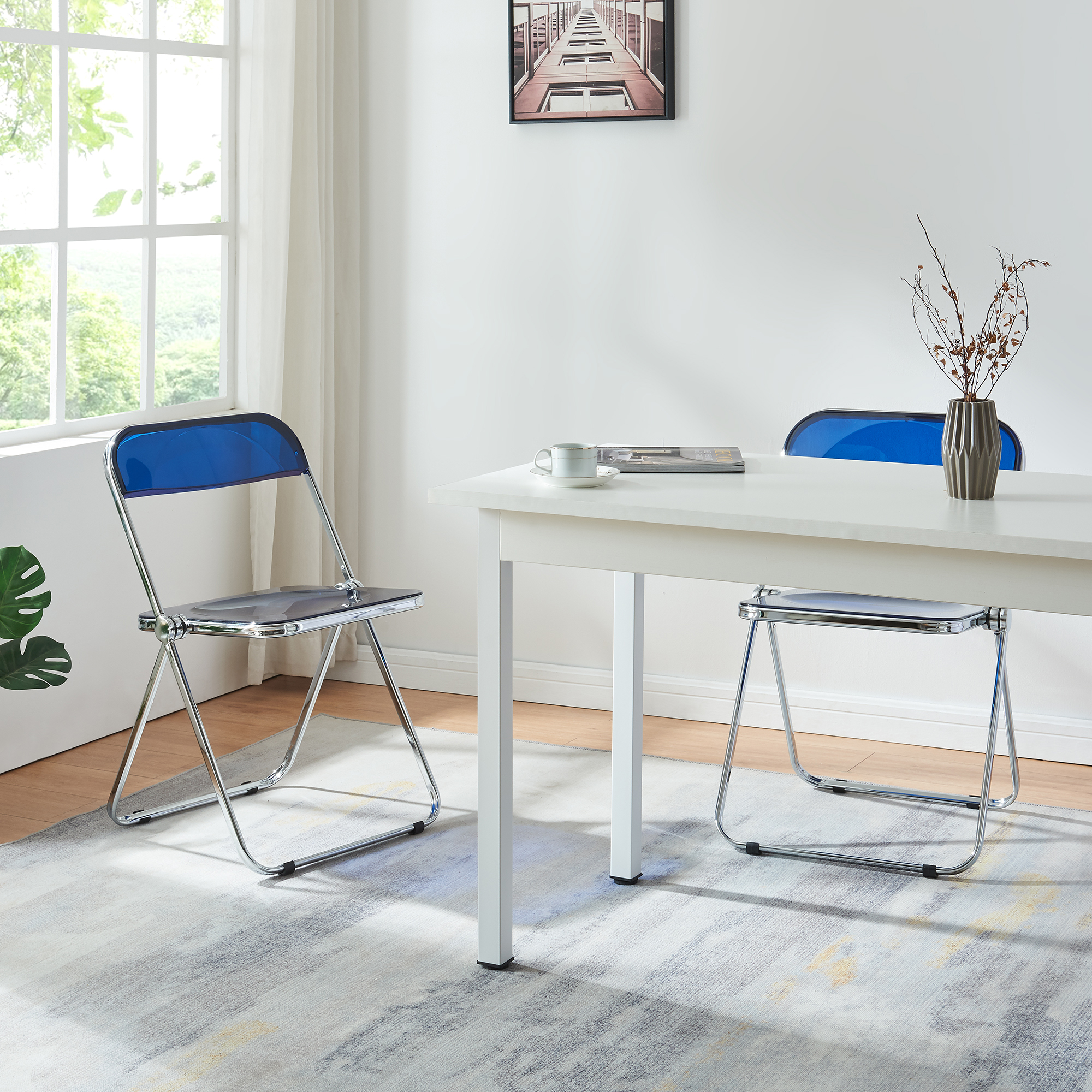 Set 4 scaune pliabile Pornainen – soluția practică și modernă pentru locuință, birou sau evenimente. Aceste scaune pliabile impresionează prin designul elegant în nuanță albastru transparent, dar și prin utilizarea simplă și depozitarea eficientă.